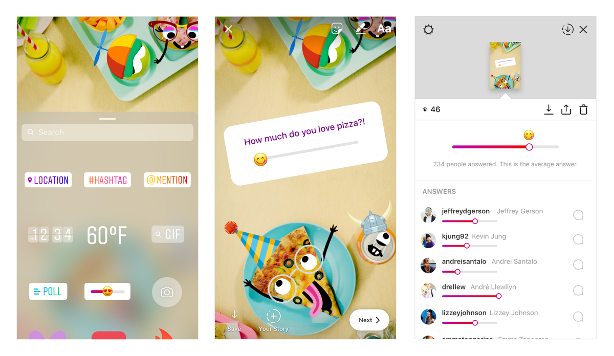 Vào tháng 10 năm vừa rồi, Instagram đã ra mắt tính năng tương tự. Cách đây vài tuần, mạng xã hội này cũng ra mắt tính năng cho phép mọi người kéo thả tùy ý “thang mức độ cảm xúc” theo sở thích của mình để trả lời câu hỏi, với cách thức hỏi cũng gần giống như đặt ra 2 phương án để chọn trước kia nhưng lại thú vị hơn.