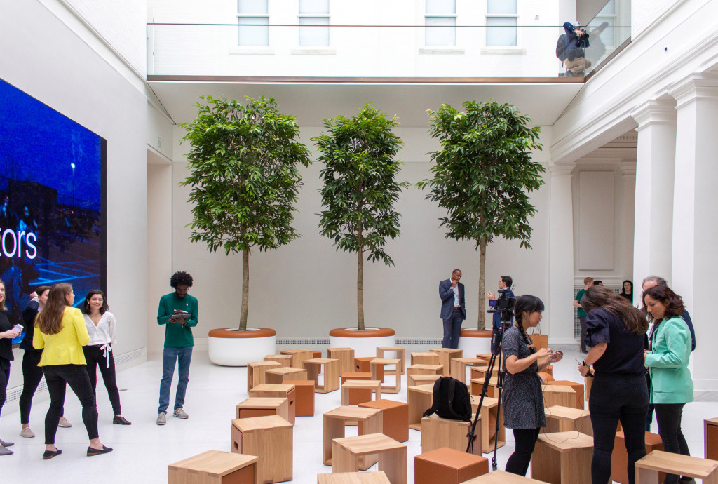 Được biết, với công trình này, Apple tiếp tục hợp tác với Foster + Partners cho phần thiết kế và Beyer Blinder Belle cho phần chuyên gia phục dựng. Chiến lược mà Apple sử dụng cho thấy mong muốn của hãng này trong việc giữ lại lối kiến trúc ban đầu của thư viện trong khi đó vẫn thêm được vào một vài điểm nhấn nhá hiện đại.
