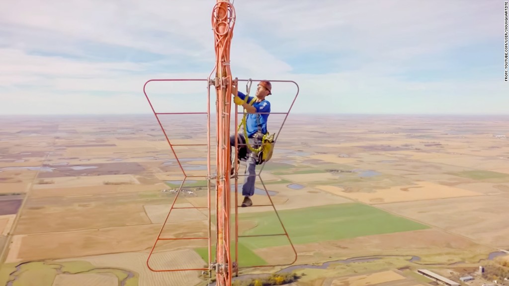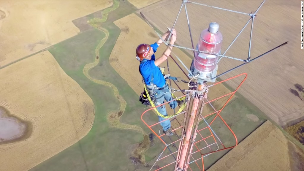 Cụ thể, anh chàng Kevin Schmidt, kỹ sư điện thuộc công ty Sioux Falls Tower & Communications có công việc khá đơn giản là thay bóng đèn 6 tháng 1 lần, một công việc cực kỳ nhẹ nhàng nhưng có thể thu nhập được 20.000 USD (khoảng 465 triệu đồng).