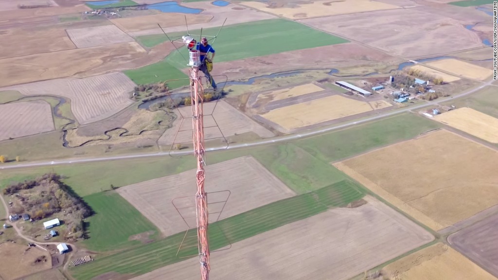 Tuy nhiên, bù lại anh chàng sẽ phải trèo lên đỉnh của tòa tháp analog KDLT-TV, cao 457m toạ lạc ở gần khu vực Rowena, South Dakota, Mỹ.