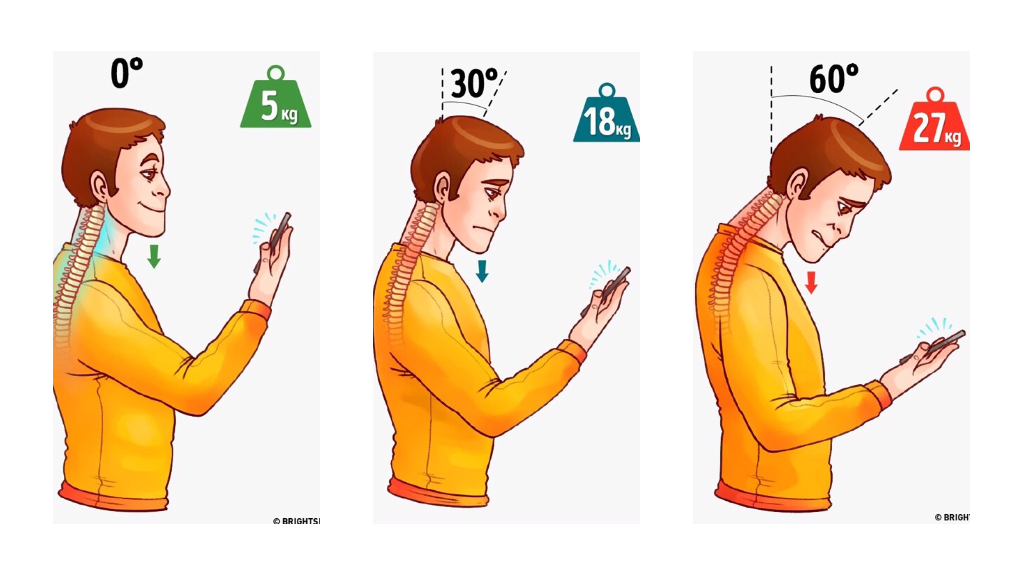 Tư thế dùng điện thoại cũng ảnh hưởng rất lớn đối với sức khỏe của người sử dụng. Nếu bạn thường xuyên giữ tư thế cúi đầu và ngồi trong thời gian lâu, máu trong cơ thể sẽ khó lưu thông đến các bộ phận khác trên cơ thể gây hiện tượng tê, mỏi chân tay, thậm chí có thể gây gù lưng và tổn thương đốt sống cổ.