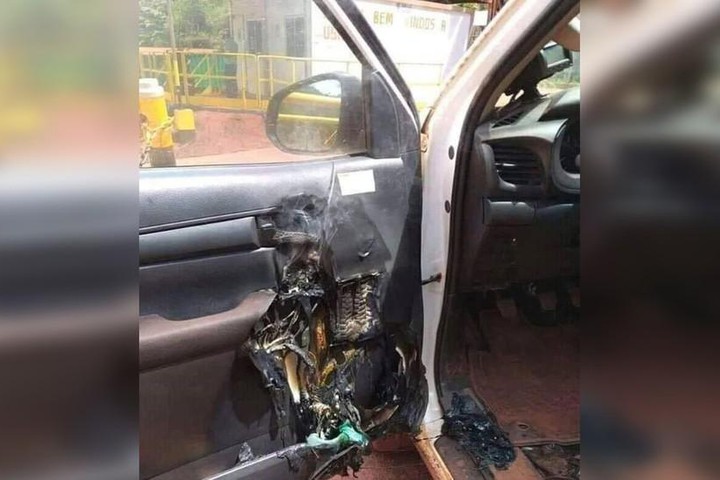 Nội thất chiếc xe hơi bị phá hủy nặng nề do nước rửa tay phát nổ ở Mỹ. (Ảnh: Reuters)
