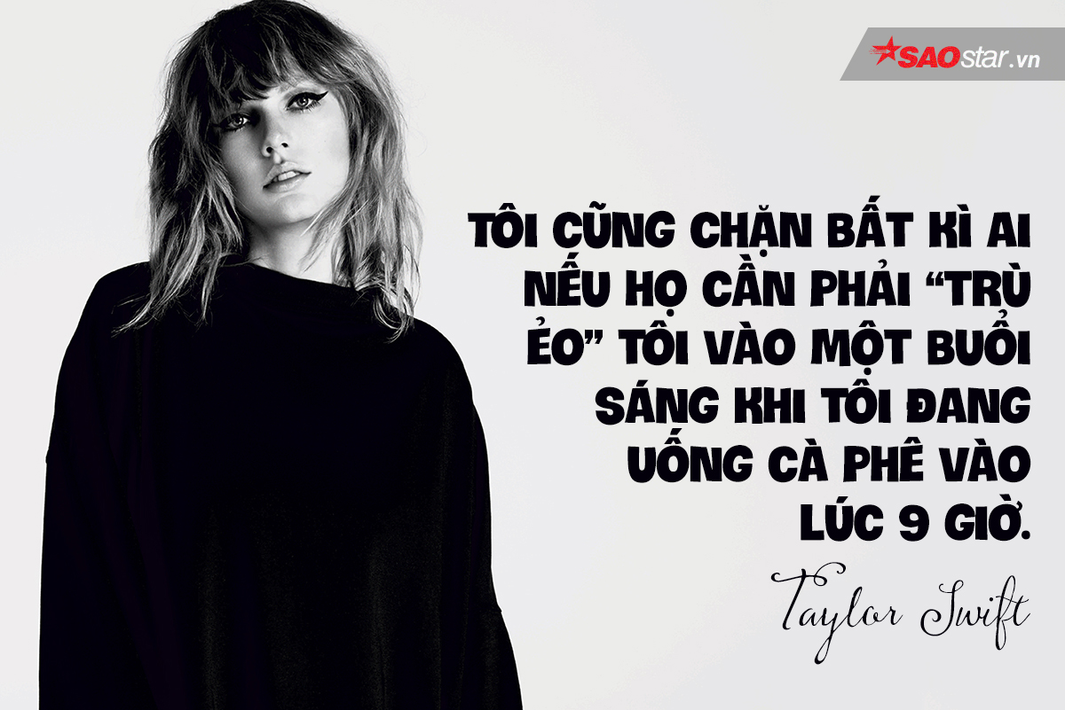 “Mạng xã hội có thể rất tuyệt nhưng nó cũng có thể khiến đầu bạn ngập tràn những hình ảnh thực sự không phải con người bạn, về cách bạn thất bại, hoặc về một ai đó tuyệt vời hơn bạn ở một thời điểm nào đó. Một thứ tôi làm để tiết chế những tia laser của sự bất an kì quặc này là tắt bỏ phần bình luận. Đúng vậy, tôi tắt phần bình luận trên những bài đăng của mình. Bằng cách này, tôi vẫn cập nhật cho bạn bè và người hâm mộ về cuộc sống của tôi, nhưng tôi học cách để bản thân chẳng cần ai đó xác nhận và nói với tôi rằng tôi trông thật tuyệt. Tôi cũng chặn bất kì ai đó nếu họ cần phải “trù ẻo” tôi vào một buổi sáng khi tôi đang uống cà phê vào lúc 9 giờ,” Taylor Swifr viết.