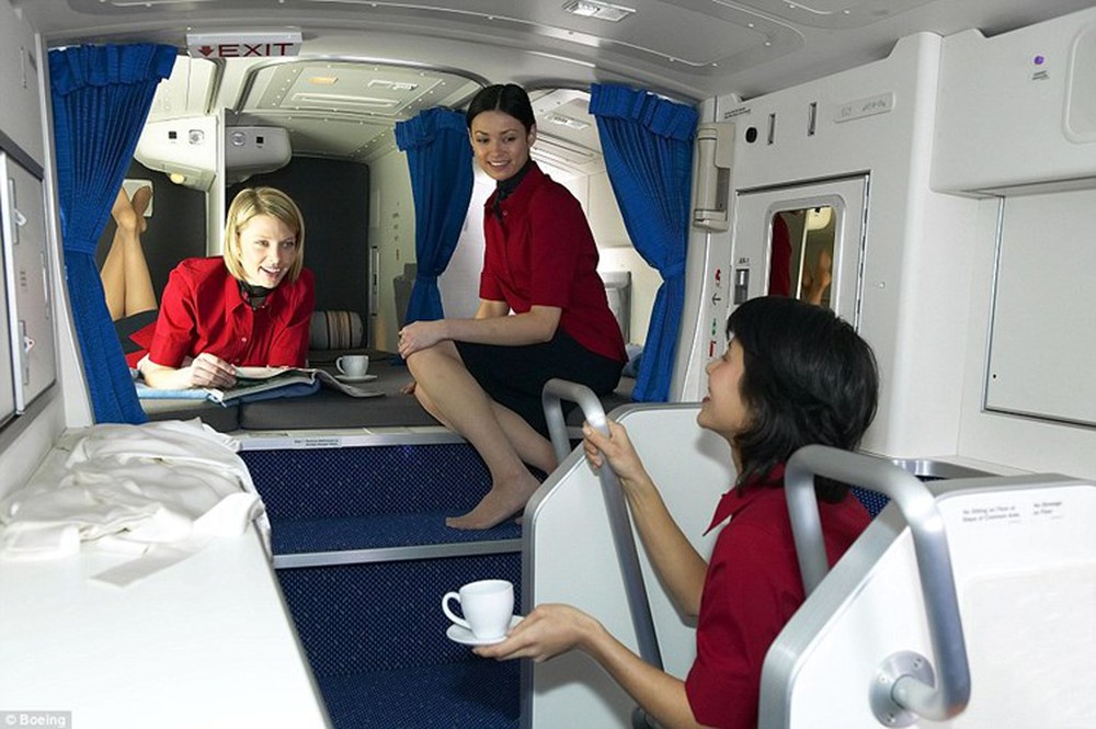 Thông thường, các phòng ngủ siêu nhỏ này được giấu sau một cầu thang bí mật trên máy bay và đó chính là nơi các thành viên phi hành đoàn và tiếp viên hàng không nghỉ ngơi sau những chuyến bay dài.