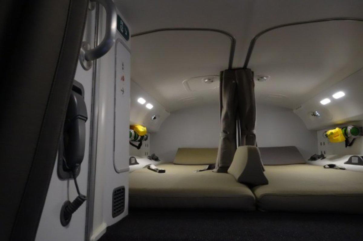 Giường của phi công có không gián khá rộng rãi và được bố trí hệ thống cách âm, nhằm đảm bảo sự yên tĩnh cho việc nghỉ ngơi.