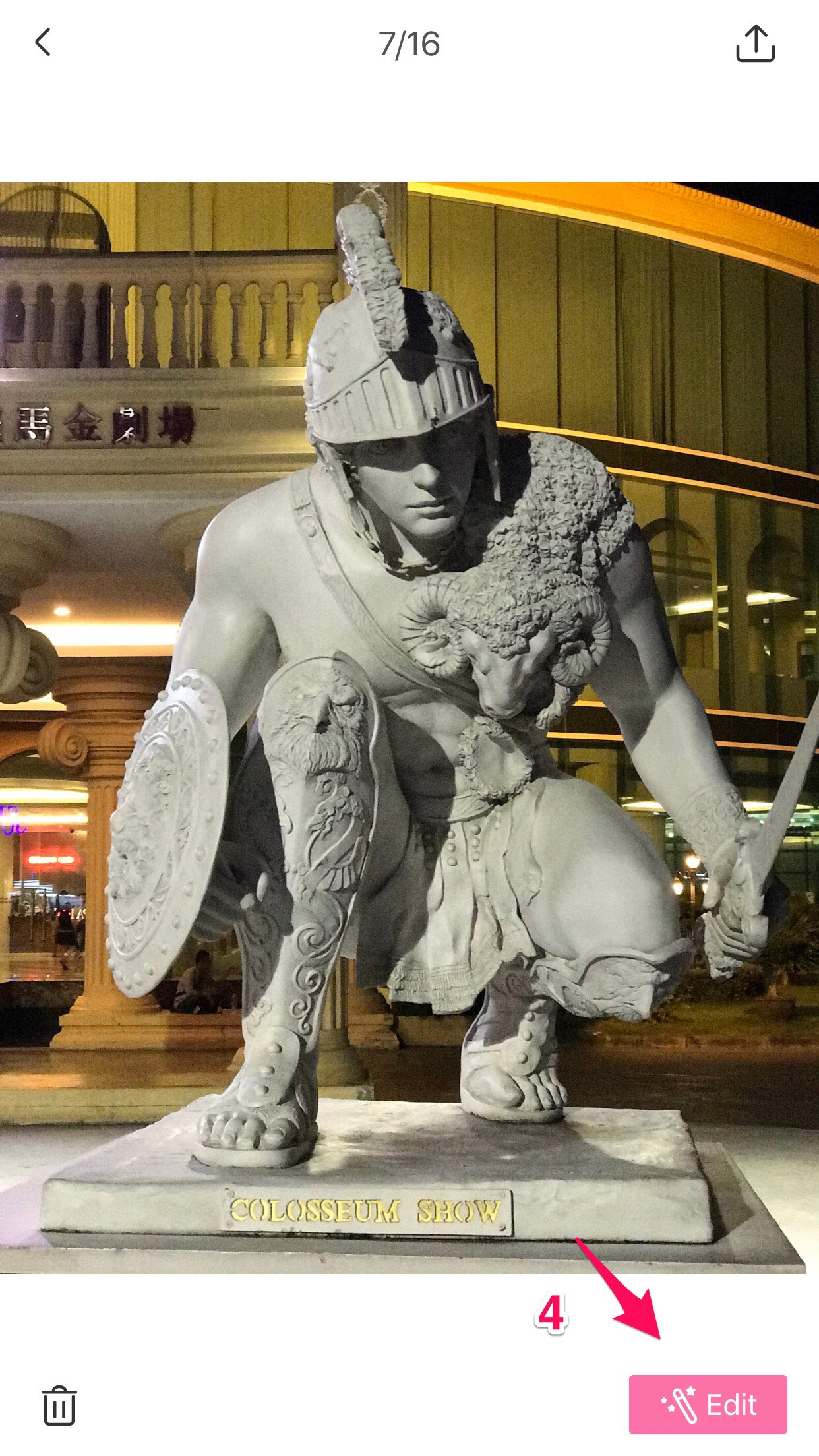 Bước 4: Nếu chọn chỉnh ảnh có sẵn trong thư viện, bạn hãy nhấn vào nút “Edit” màu hồng phía dưới ứng dụng