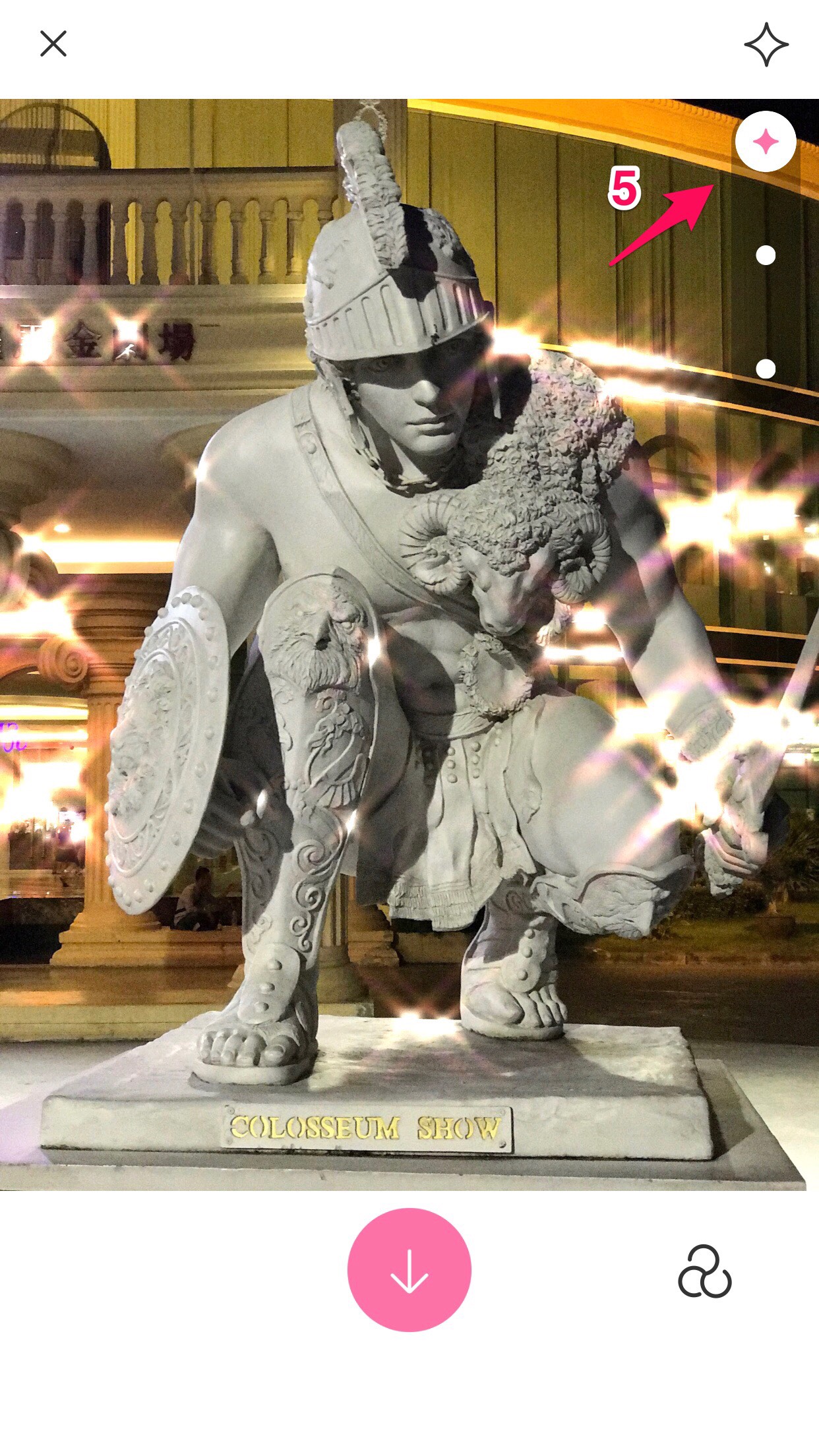 Bước 7: Sau khi có được bức ảnh ưng ý thì bạn hãy nhấn vào biểu tượng mũi tên để lưu ảnh về máy nhé!