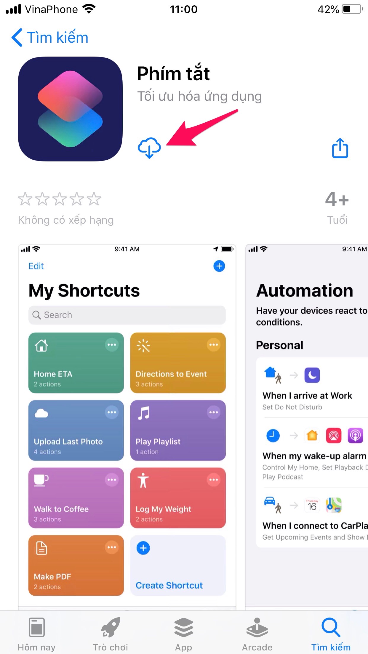 Trước tiên, hãy tải về ứng dụng Shortcuts (hoặc Phím tắt nếu bạn đang sử dụng App Store khu vực Việt Nam).