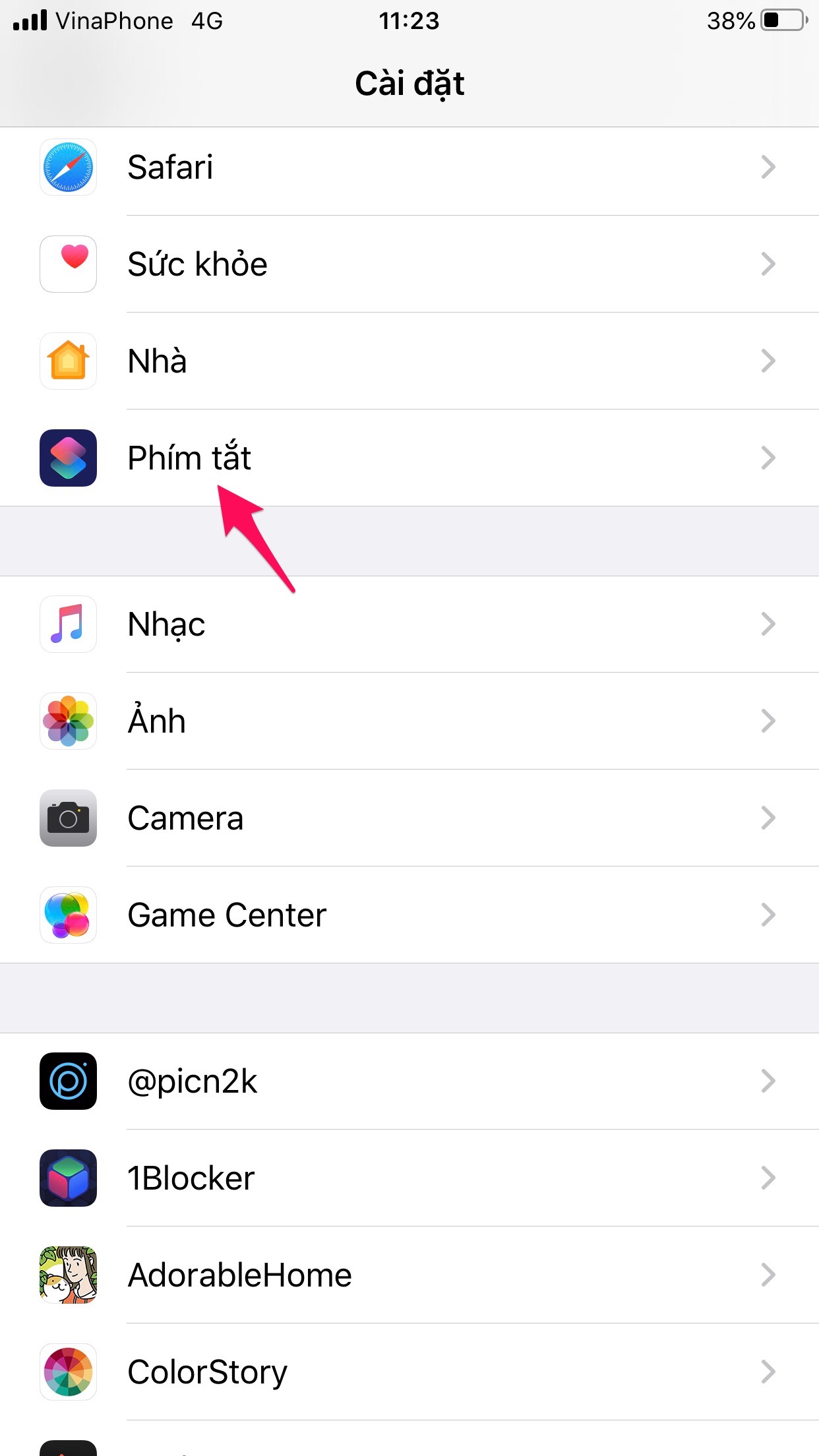 Tiếp đến vào Cài đặt và chọn Phím Tắt.