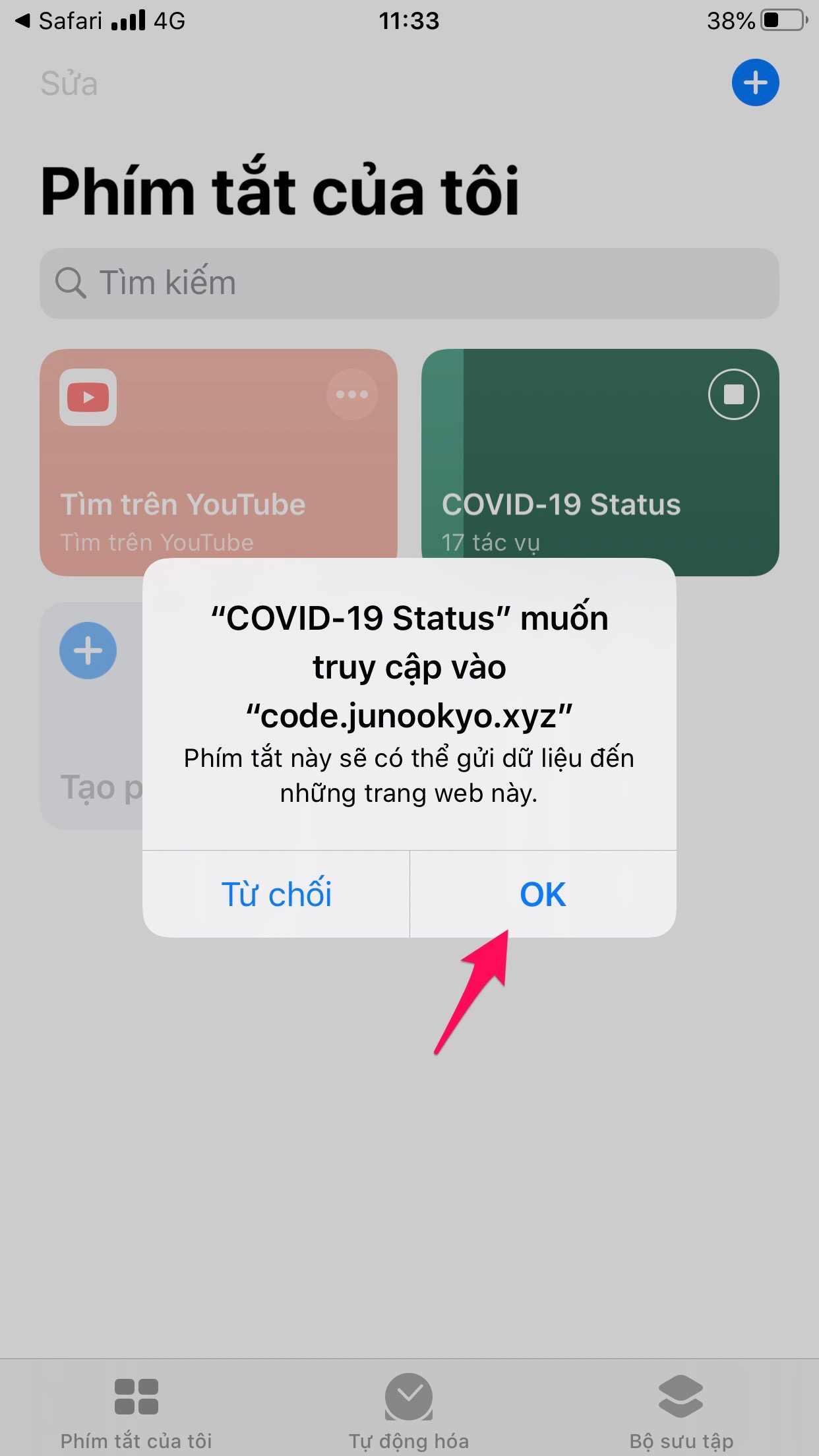 Kế đến hãy truy cập đường dẫn sau để tải về phím tắt COVID-19 Status (Phím tắt cập nhật nhanh tình hình dịch bệnh Covid-19):