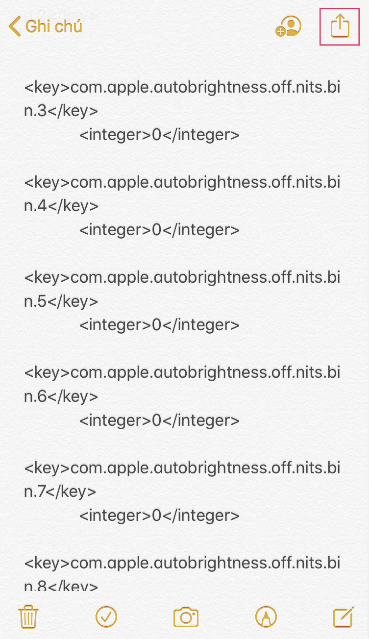Bước 3: Để dễ tìm kiếm dữ liệu số lần sạc trên iPhone, bạn hãy sao chép toàn bộ dữ liệu log aggregated này qua ứng dụng Ghi chú.