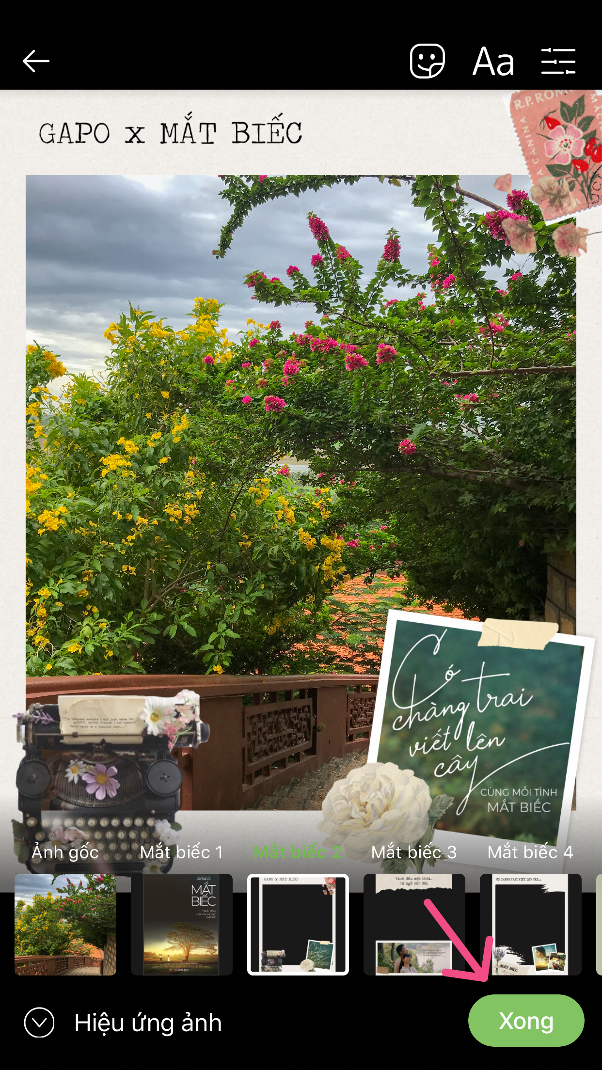 Bước 3: Màn hình sẽ hiện ra một loạt khung ảnh “Mắt biếc” để bạn lựa chọn. Sau khi đã chọn được khung ảnh, bấm “Xong”.