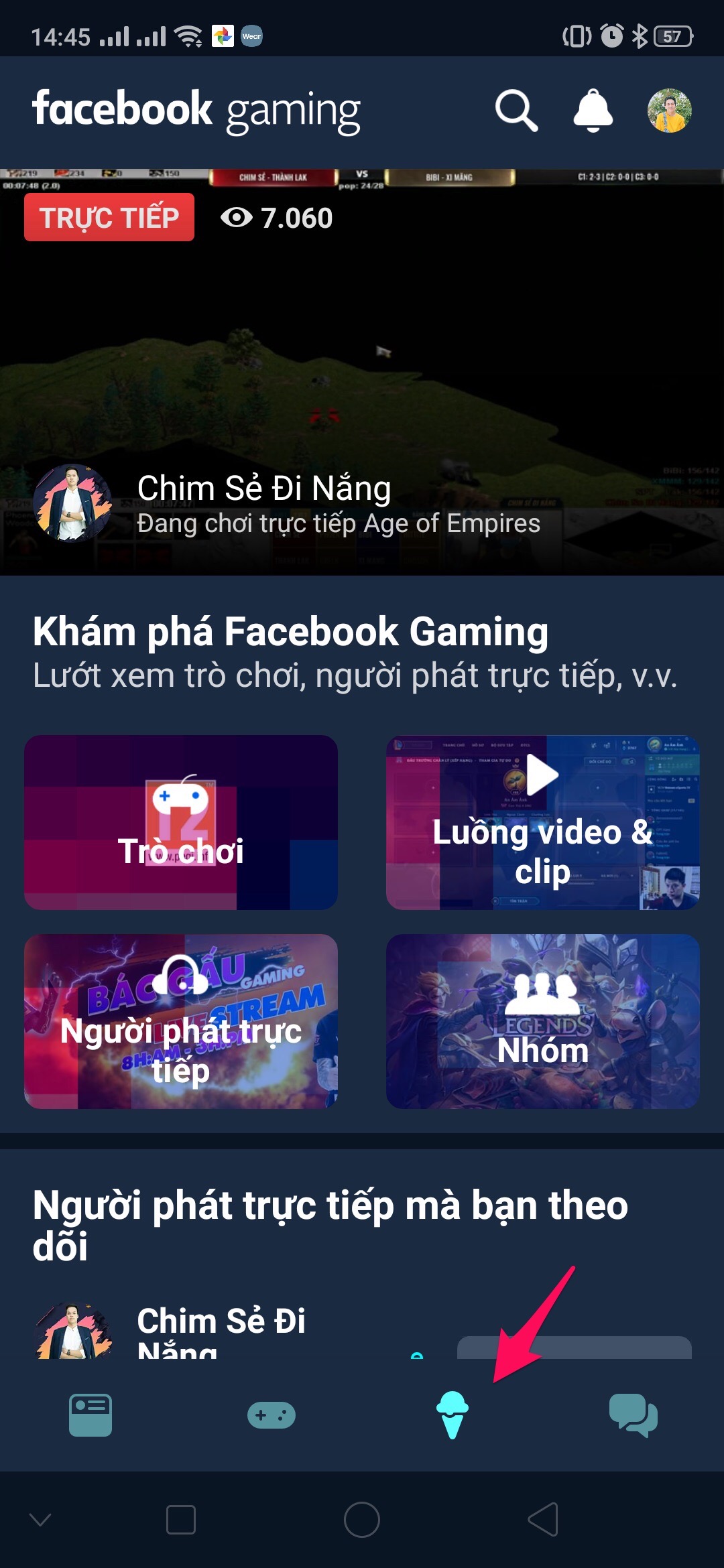 Tại biểu tượng cây kem này là video stream trực tiếp và danh sách game mà bạn đã đăng ký để theo dõi.