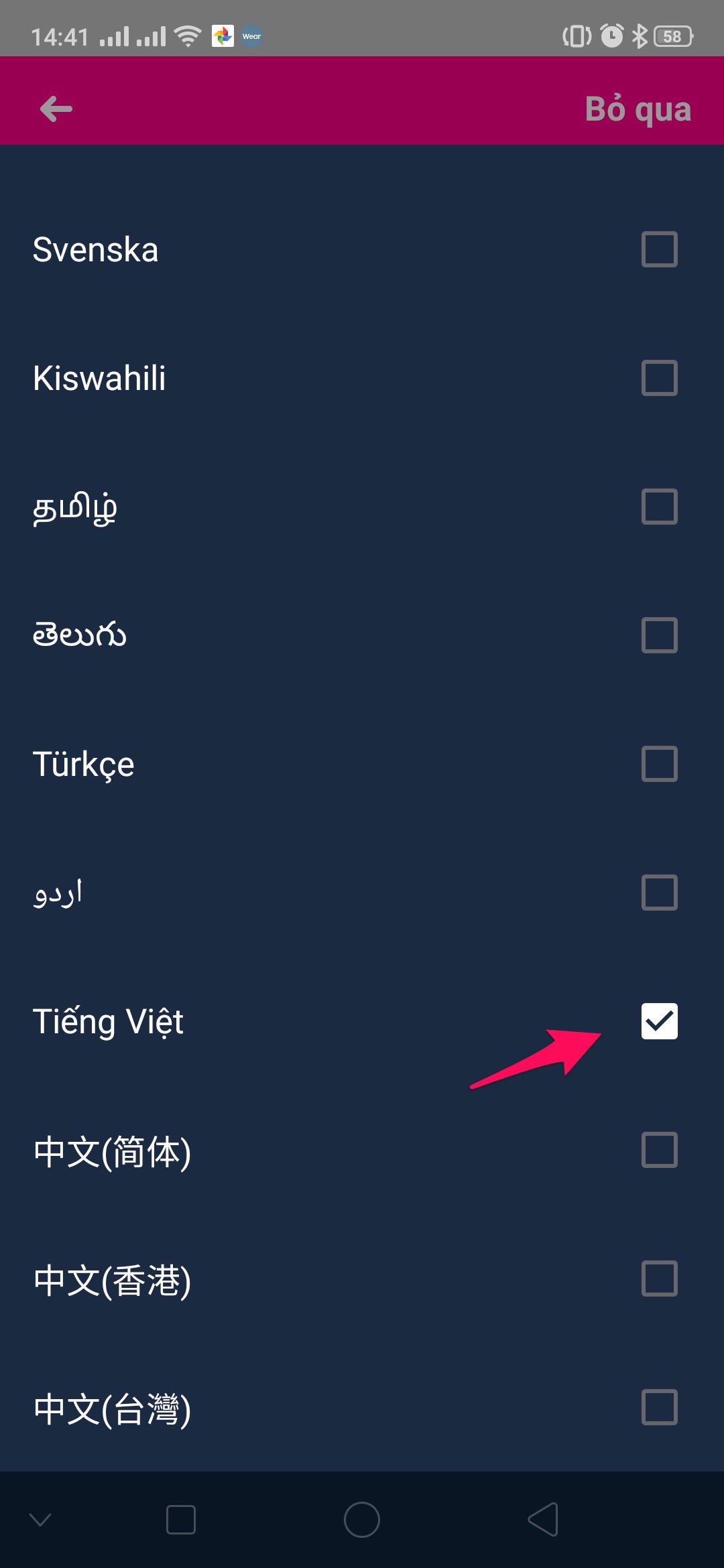Tiếp đến, bạn chọn ngôn ngữ “Tiếng Việt”