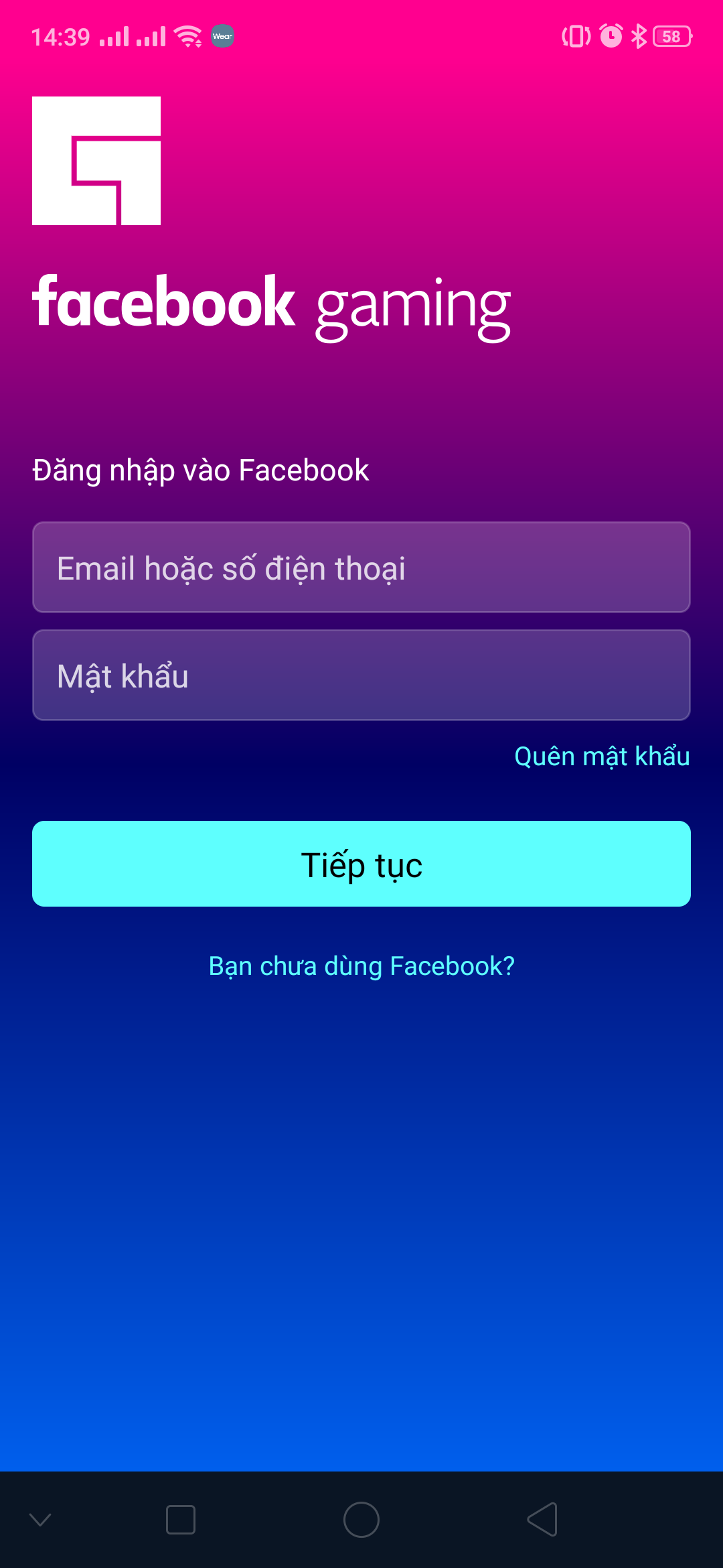 Đầu tiên bạn hãy tải về ứng dụng Facebook Gaming về điện thoại. Sau khi truy cập ứng dụng, bạn cần đăng nhập để sử dụng bằng tài khoản Facebook của mình.