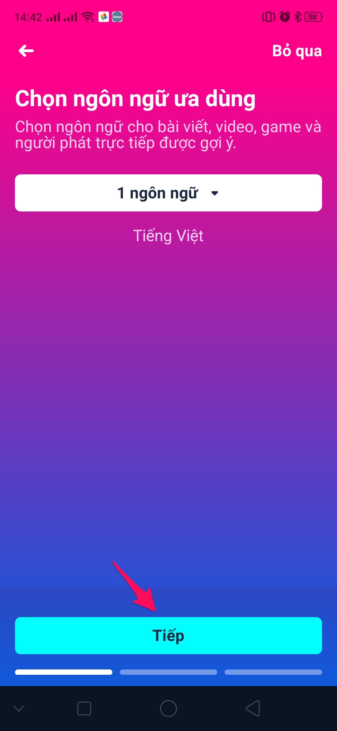 Sau khi đã chọn xong ngôn ngữ bạn nhấn “Tiếp”.