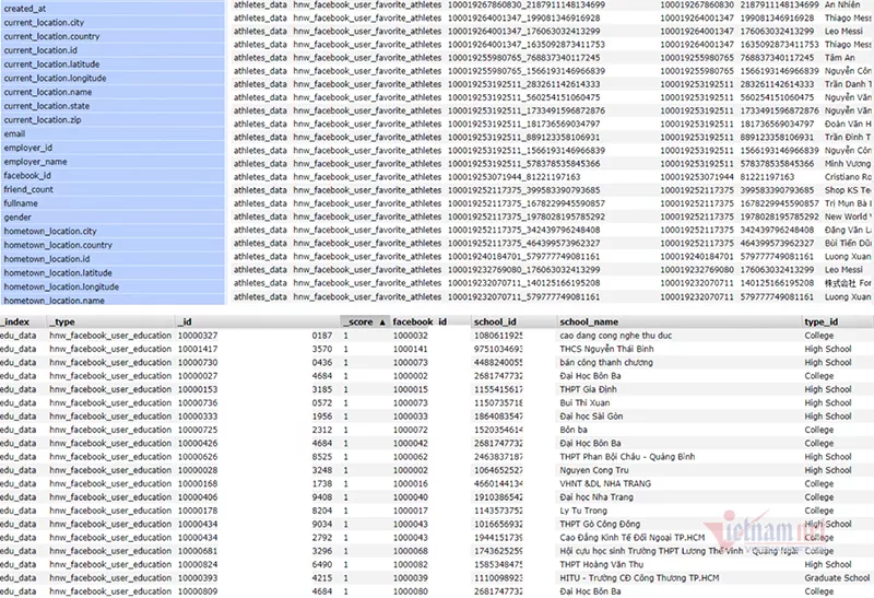 Không chỉ vậy, các trường thông tin như quê quán, nơi làm việc, học tập, thông tin về gia đình, người thân cũng như sở thích của các chủ tài khoản Facebook cũng được thể hiện một cách chi tiết. Toàn bộ dữ liệu này đều ở dạng không được mã hoá.