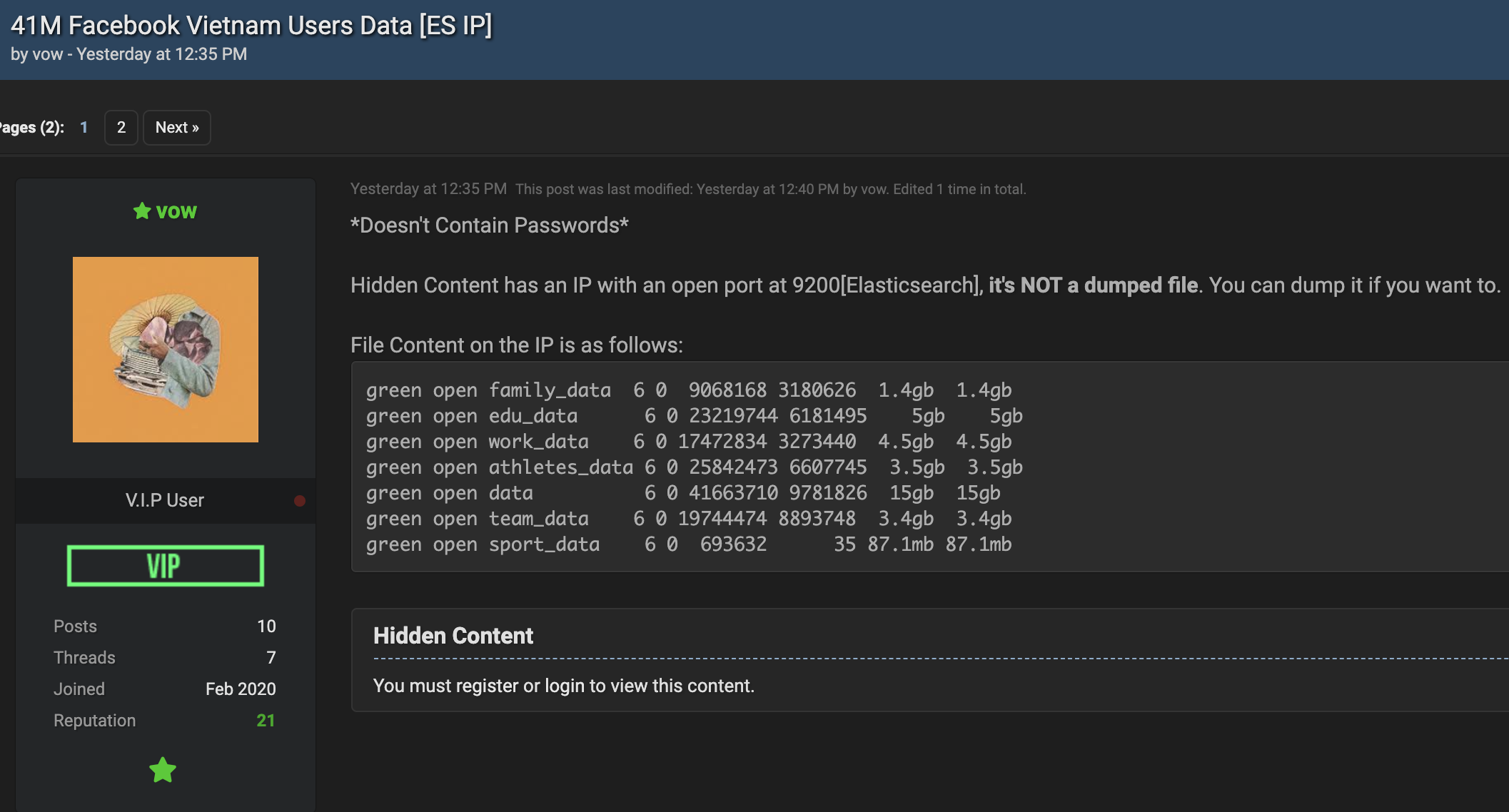 Dưới bài đăng, có rất nhiều thành viên R**dForums đã tải về mớ dữ liệu này và cũng không quên cảm ơn hacker có tên tài khoản 'vow'. Một số người cũng đặt nghi vấn về nguồn gốc của mớ dữ liệu này, cũng như đây có phải là những thông tin mới từ 2019 hay không nhưng chưa nhận được bất cứ phản hồi.