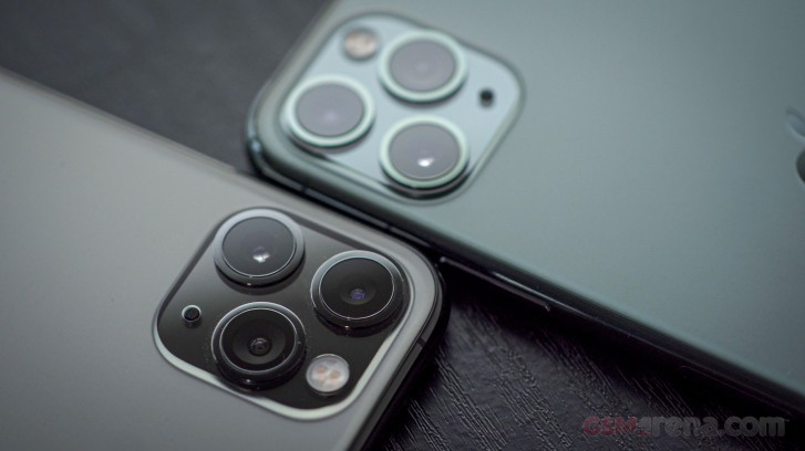 iPhone 11 Pro Max có ba camera ở mặt lưng. Chúng được bố trí trên một cụm camera lồi lên hình vuông. (Ảnh: GSMArena)