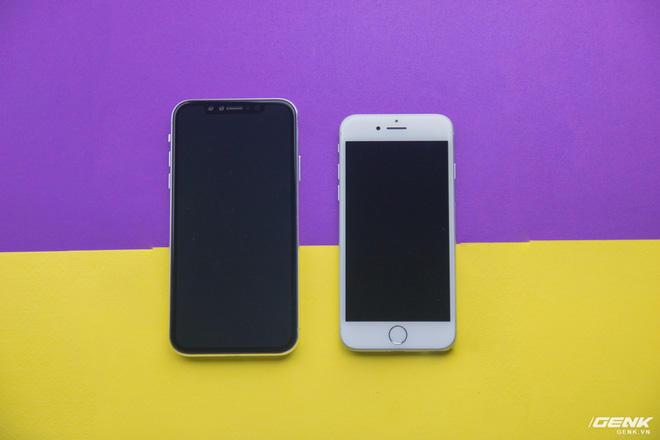 Màn hình của iPhone 6.1 inch được tối ưu và chiếm gần như chiếm hầu hết diện tích của máy. Trong khi đó iPhone 8 vẫn có những cạnh viền dày cùng phím Home quen thuộc