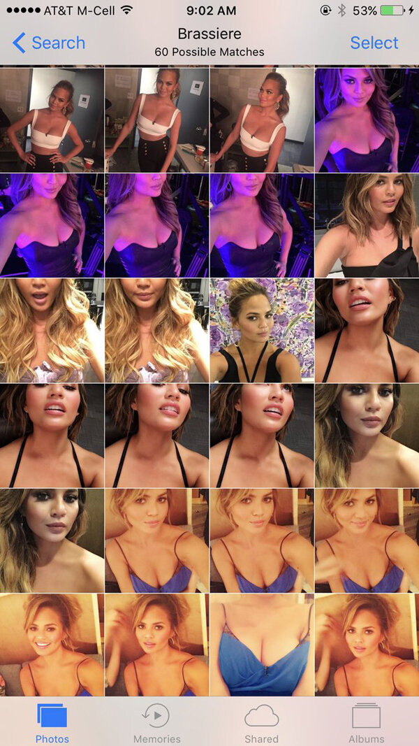 Đầu tiên, Apple cho phép người dùng tìm kiếm hình ảnh của họ bằng rất nhiều từ khóa tìm kiếm và nó sử dụng công nghệ máy học để tự động tìm ra các hình ảnh phù hợp với tiêu chí tìm kiếm. Ví dụ, khi gõ từ khóa “cat” (mèo), bạn sẽ tìm được rất nhiều hình ảnh có những chú mèo trong điện thoại của mình. “Brassiere” là một trong những từ khóa như vậy.