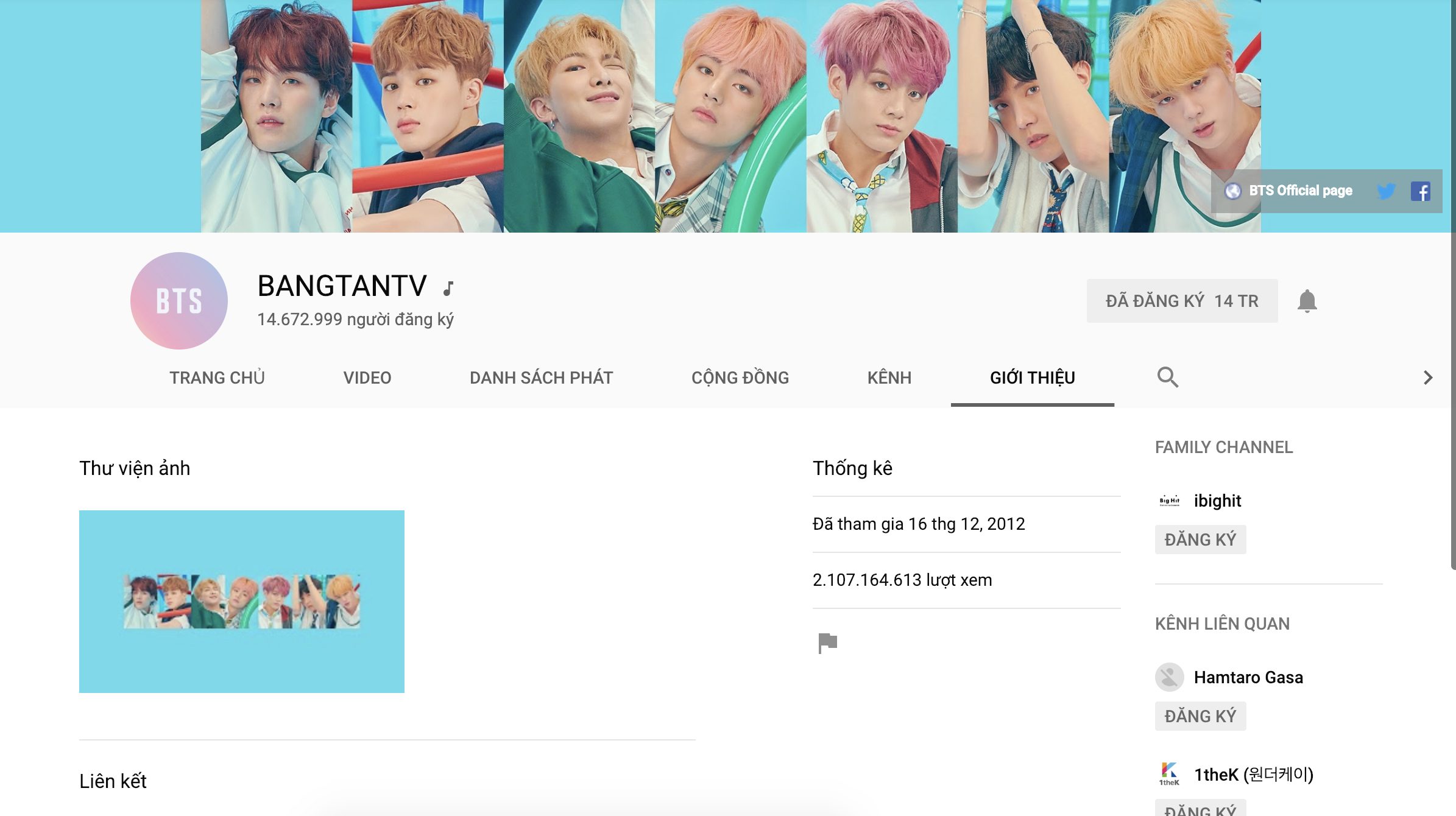 Theo đó, tên kênh YouTube BangtanTV bỗng dưng không còn hiển thị và dấu tick xanh xác thực mà YouTube chỉ cấp cho kênh Nghệ sĩ chính thức dành cho BTS cũng mất hút không rõ lý do.