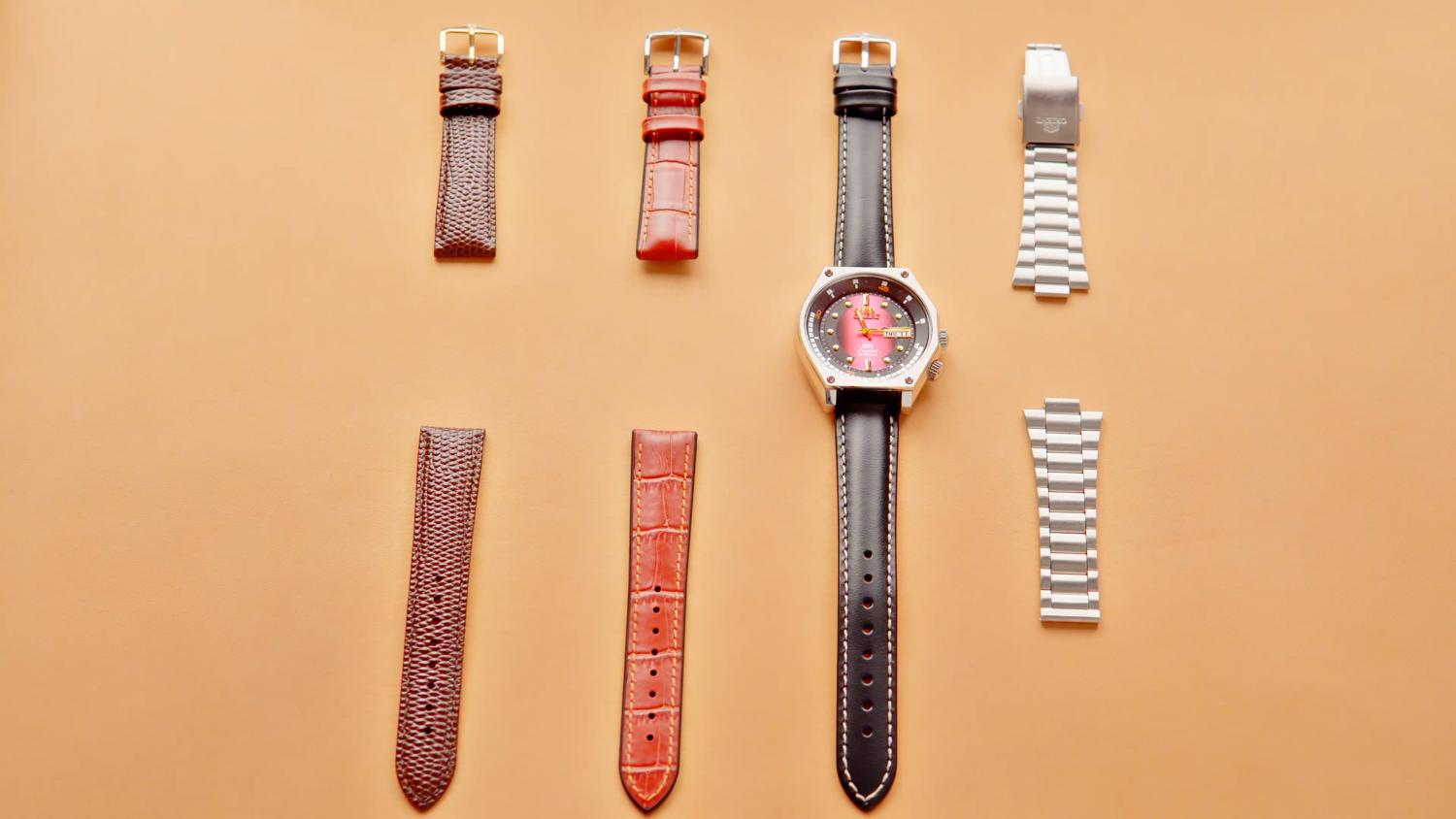Đồng hồ Orient SK mặt lửa 2019 và dây chịu nước của Hirsch (từ trái qua: Hirsch RAINBOW 20mm, Hirsch PAUL 20mm, Hirsch TROOPER 20mm, dây nguyên bản).
