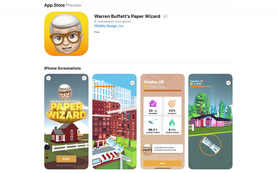 Đây là những gì Apple giới thiệu về trò chơi này trên App Store: “Bạn nghĩ rằng mình có thể tung một tờ báo như Warren Buffett huyền thoại? Hãy thử thách kĩ năng ném báo của bạn trên những đường phố ở Omaha, Nebraska và Cupertino, California. Tránh những chiếc xe và lũ chim khi bạn đi đưa báo xa gần. Liệu có ai kiếm đủ Warren Bucks để hạ gục Paper Wizard? Có lẽ là không đâu.”