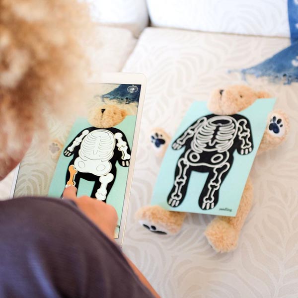 Bạn có thể “mổ xẻ” chú gấu này hay ít nhất là thấy được cả “ruột gan” của nó bằng một ứng dụng rất tuyệt vời. Seedling nói rằng Parker là chú gấu bông đầu tiên trên thế giới tương tác với công nghệ thực tế tăng cường AR mà không có bất kỳ linh kiện điện tử nào như camera hay pin được lắp đặt bên trong. Thay vào đó, trẻ em có thể sử dụng phụ kiện bằng gỗ kèm với gấu để tương tác với Parker bằng những thiết bị iOS.