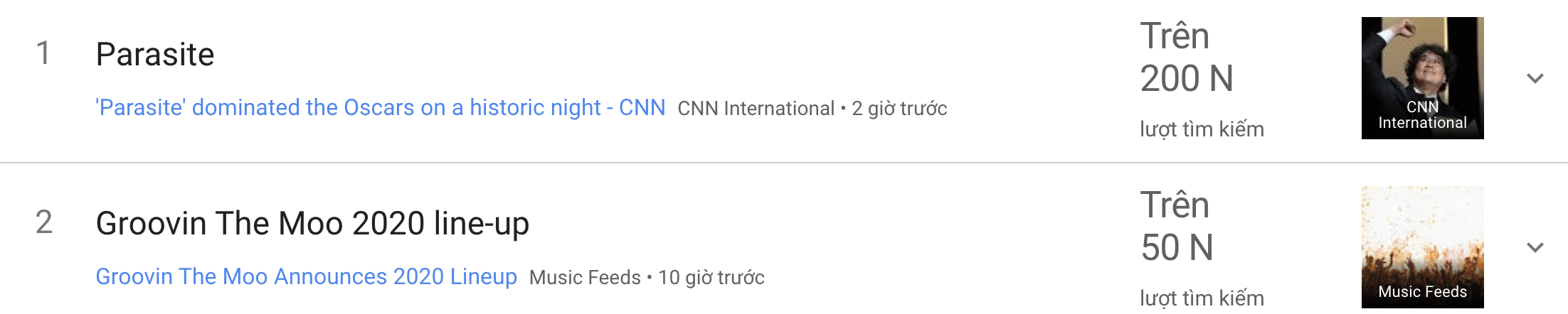 Tại Úc, từ khoá “Parasite” cũng đứng đầu danh sách xu hướng của Google với số lượt tìm kiếm lên đến trên 200.000 lượt.