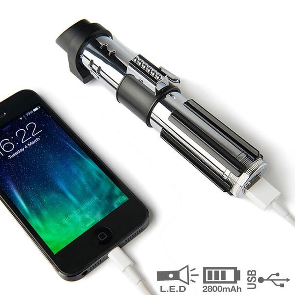 Cổng USB ở một đầu cho phép bạn kết nối thiết bị của bạn để sạc, trong khi cổng microUSB gần đó có dùng để sạc riêng cho Lightsaber. Giao diện của Lightsaber còn được mô phỏng chính xác từng chi tiết bởi vì nó thậm chí còn có bốn đèn LED màu đỏ mạnh mẽ để bắt chước ánh sáng của thanh kiếm Lightsaber trong Star War