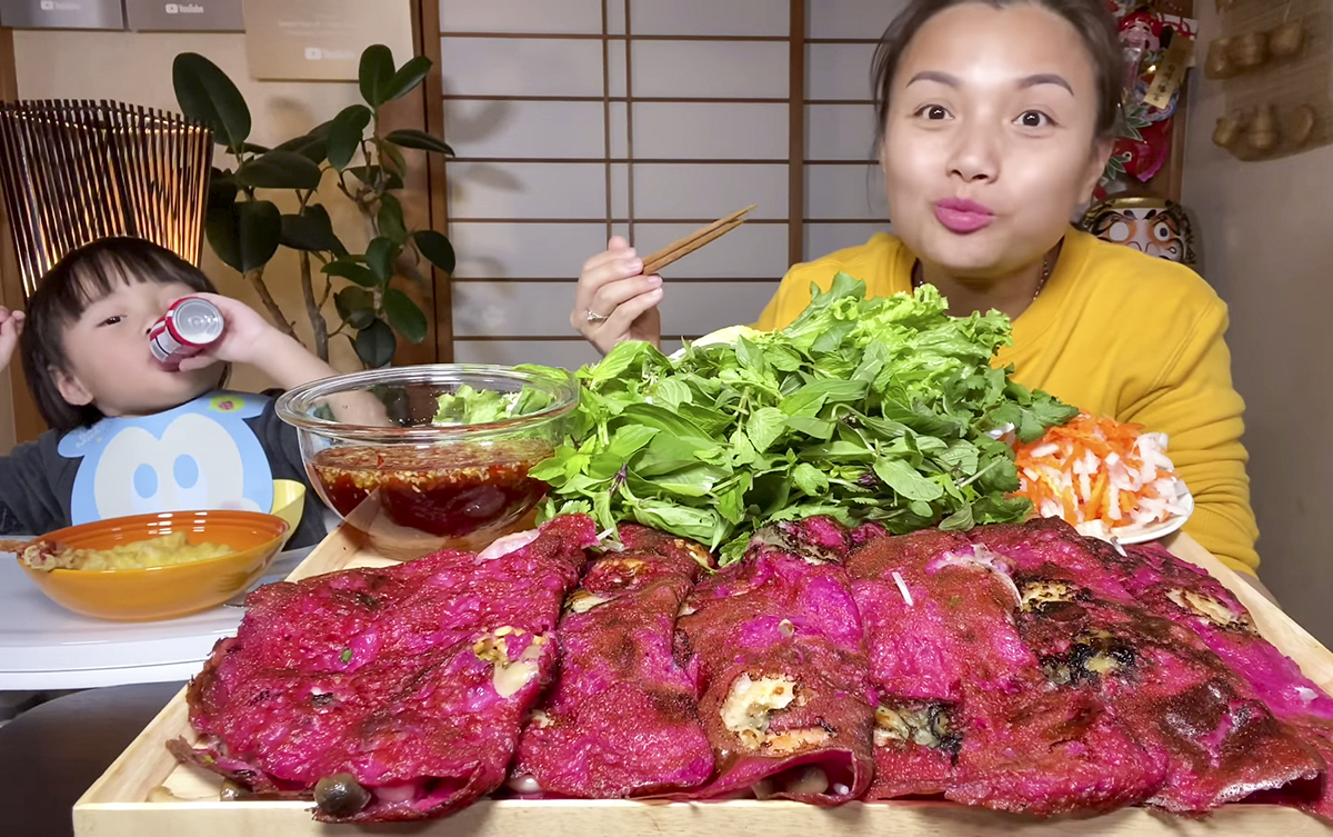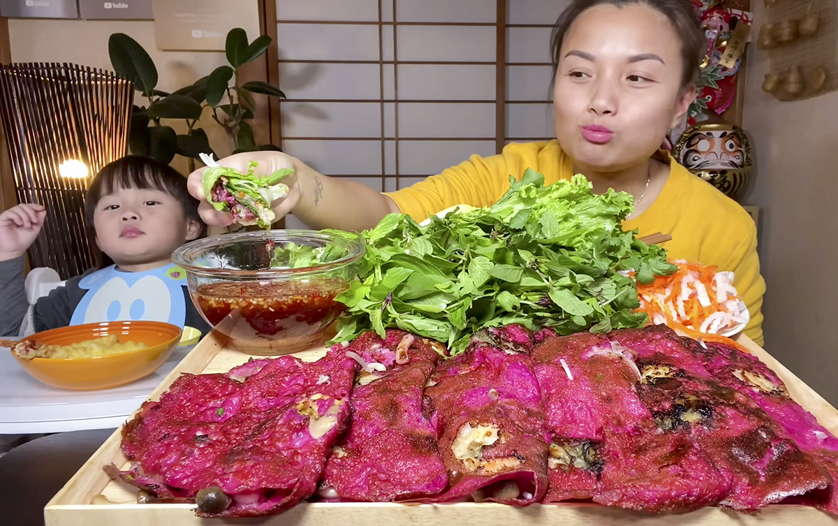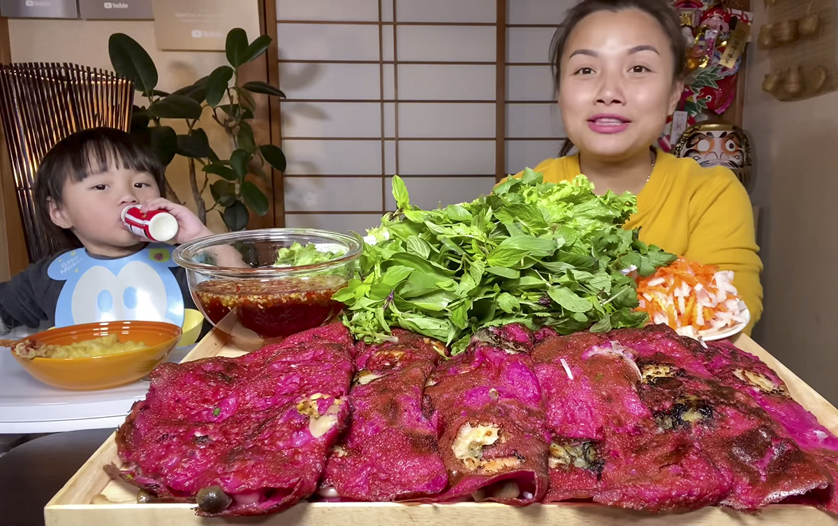 Không chỉ món bánh xèo thanh long, sự xuất hiện của bé Sa cũng khiến nhiều người xem phấn khích