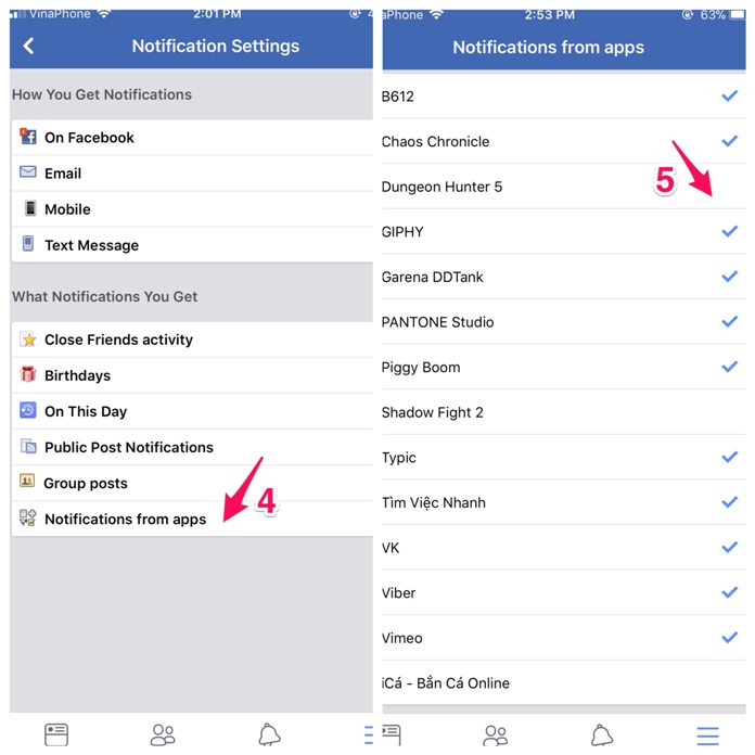 Chọn tiếp “Notifications from apps” và sau đó, bạn hãy bỏ dấu tick ở những tựa game, ứng dụng mà bạn không muốn nhận thông báo.