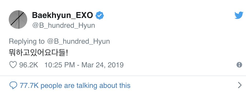 Mới đây, chàng trai ấm áp của EXO đã khiến cộng đồng fan hâm mộ sướng phát khóc khi đăng tải hàng loạt tweet siêu dễ thương trên Twitter. Chưa kể, Baekhyun đã lâu không đụng tới tài khoản Twitter của mình nên điều này khiến các fan vô cùng bấn loạn.