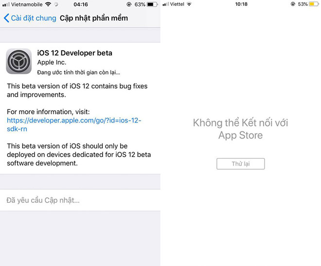 Nhưng do đây là phiên bản beta dành cho các nhà phát triển nên nó vẫn tồn tại rất nhiều lỗi trong hệ thống. Nhiều người than trời về việc không thể truy cập vào App Store sau khi nâng cấp lên iOS 12.