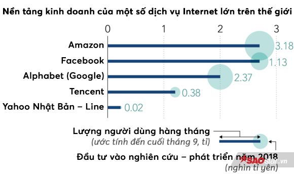 Trong khi Yahoo Nhật Bản và Line đang có lần lượt 67 triệu người dùng 160 triệu người dùng dịch vụ hàng tháng, các công ty công nghệ lớn đang có tới hơn 2 tỉ người dùng. Trong khi mỗi năm Line và Yahoo Nhật Bản chỉ dành ra khoảng 20 tỉ yên cho hoạt động nghiên cứu và phát triển, con số của những ông lớn như Google, Amazon, Facebook hay Apple có thể là hàng nghìn tỉ yên.