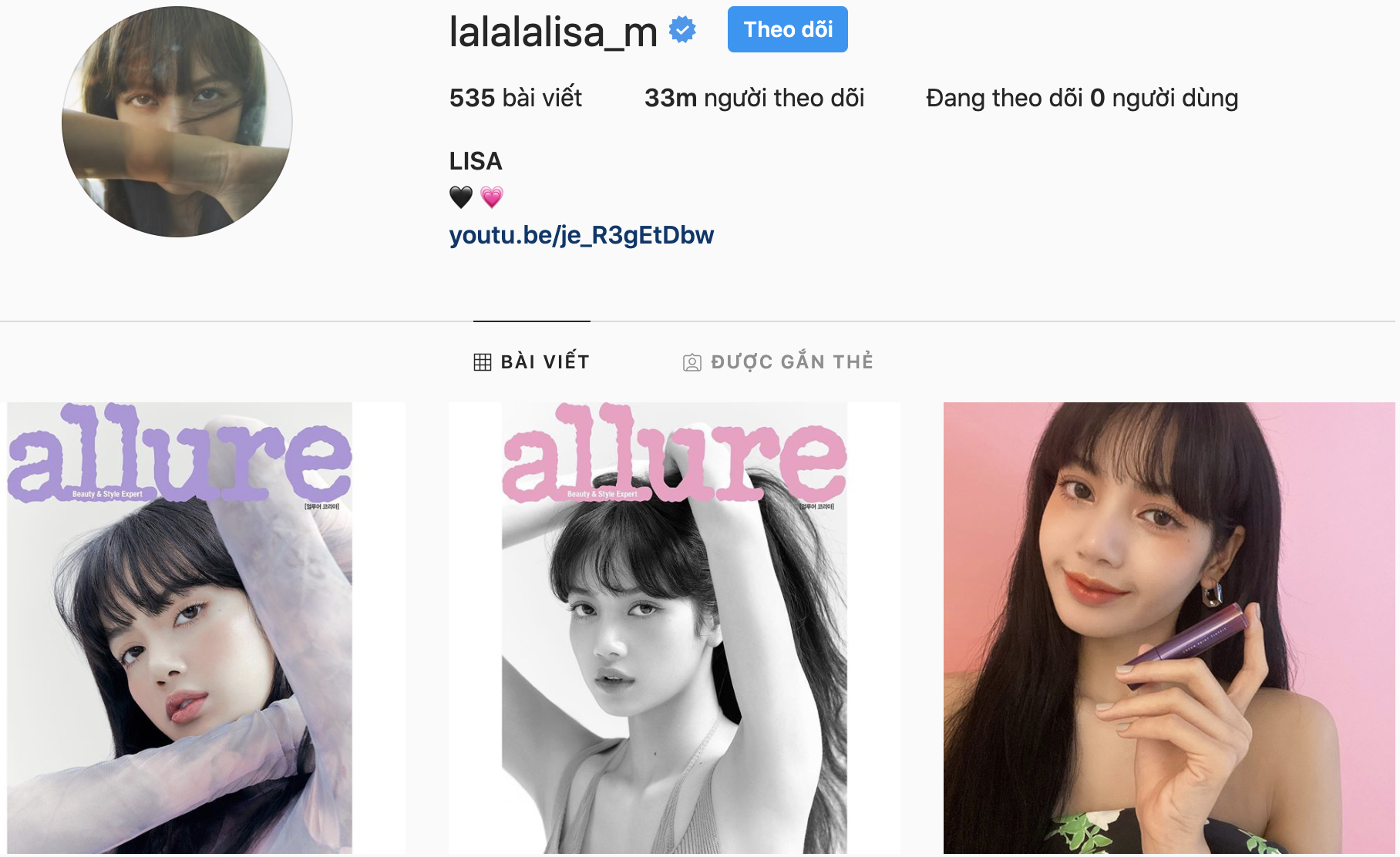 Lisa vừa chính thức chạm mốc 33 triệu lượt theo dõi trên Instagram, là idol Kpop sở hữu lượt theo dõi cao nhất trên mạng xã hội này.