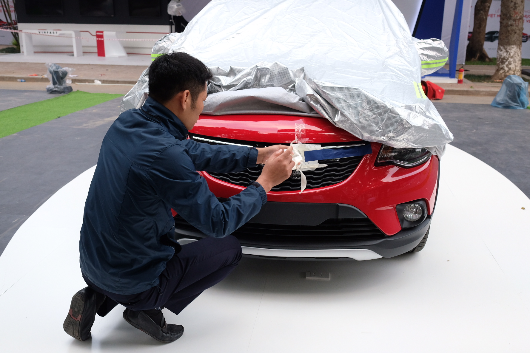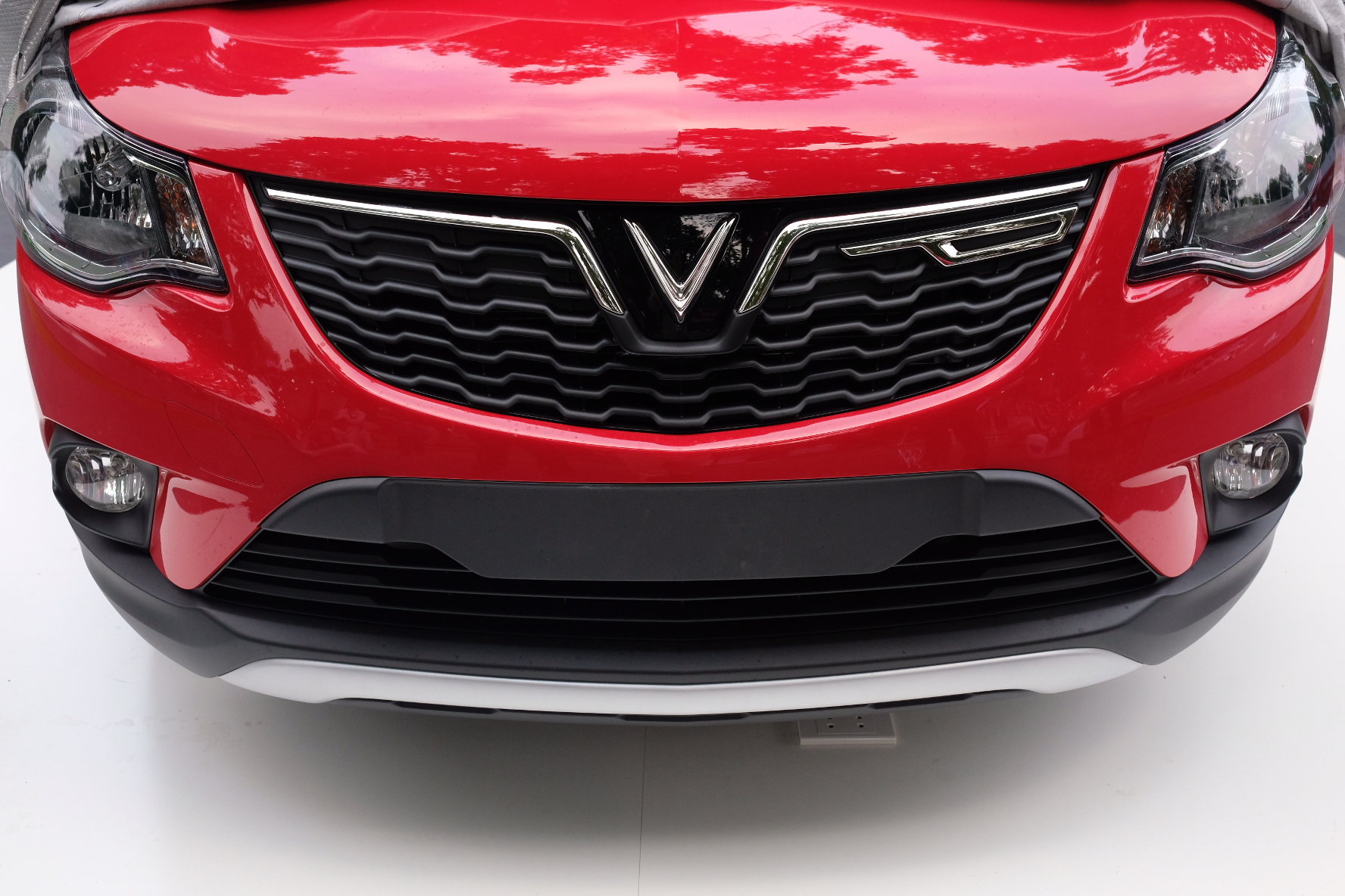 Phần đầu xe nổi bật với logo chữ V kết hợp thanh nẹp crôm trên lưới tản nhiệt tạo thành chữ VF (VinFast).