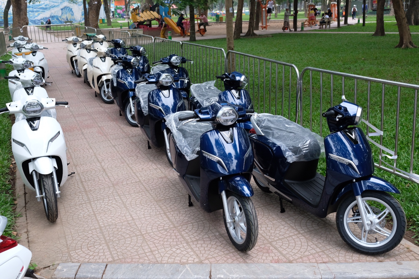 Khách tham quan có thể chạy thử hoặc đặt mua những chiếc xe máy điện này ngay tại sự kiện.