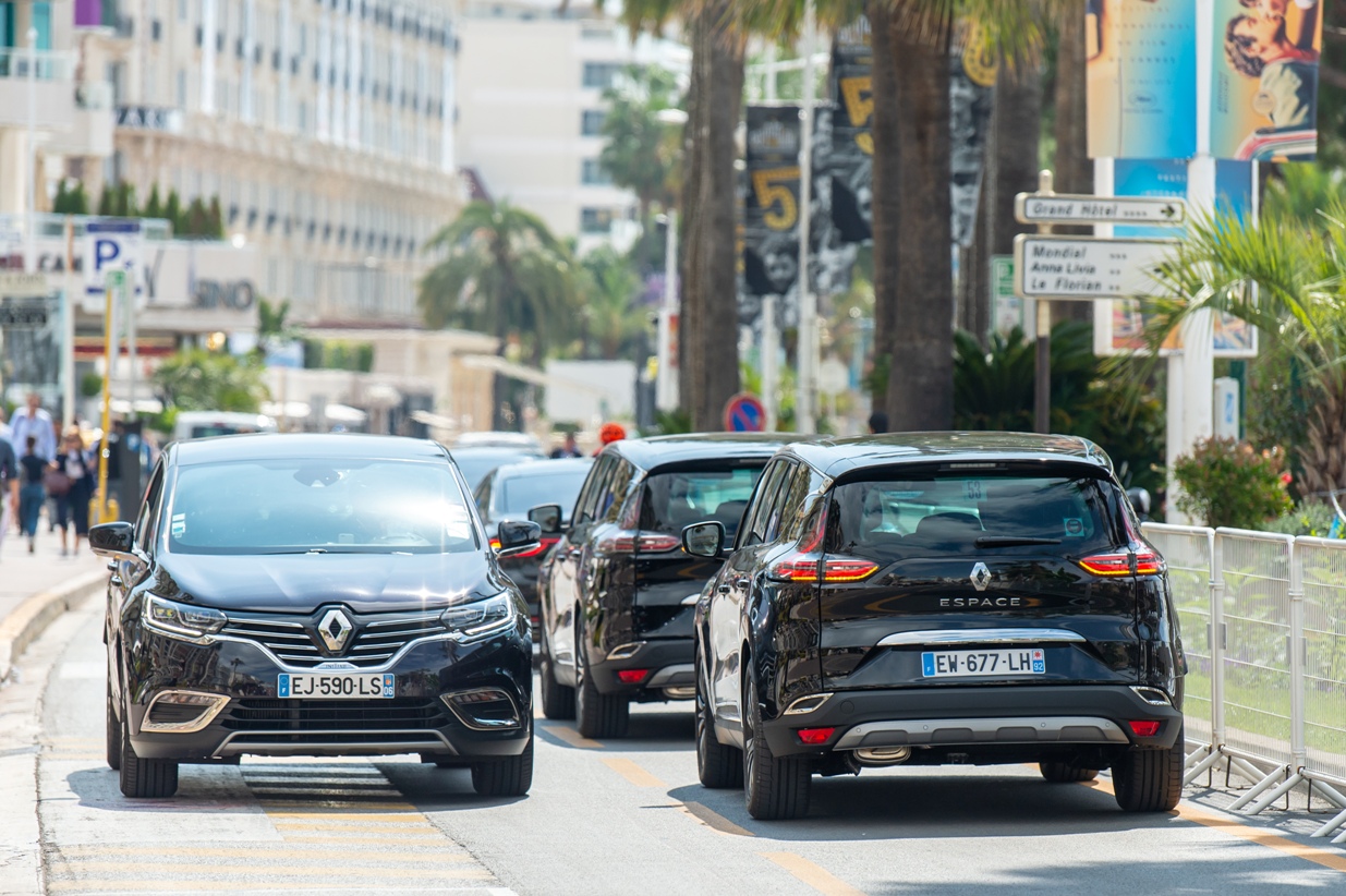 Hàng dài xe Renault Espace và Renault Talisman đang chờ đợi để đưa rước những ngôi sao nổi tiếng.