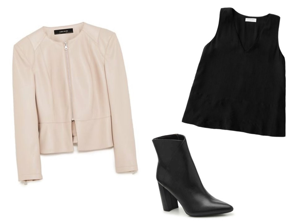 Áo jacket giả da của Zara 49,9 USD, áo ngắn Everlane giá 70 USD và giày Nine West argyle bootie 60 USD.