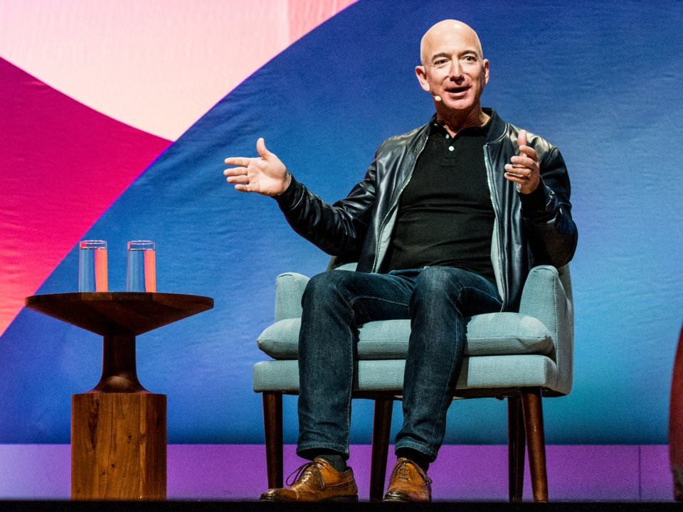 Giám đốc điều hành Amazon, Jeff Bezos có phong cách thời trang bắt mắt với áo khoác da, quần jean cùng giày Oxford thời trang.