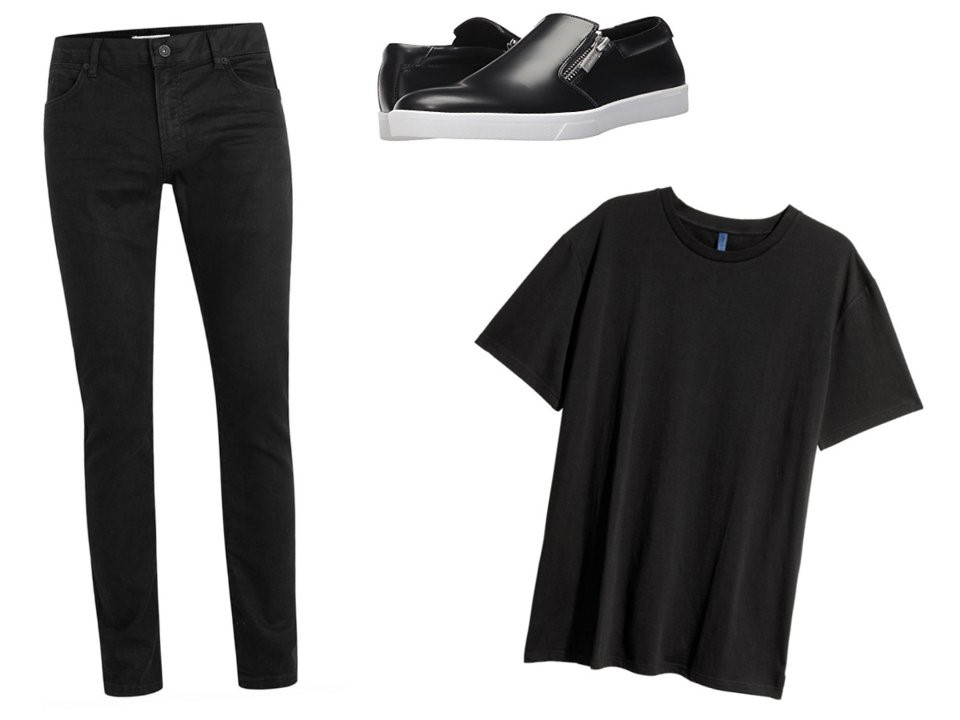Áo phông H&M 10 USD, quần jeans Topman 75 USD và giày Calvin Klein giá 60 USD.