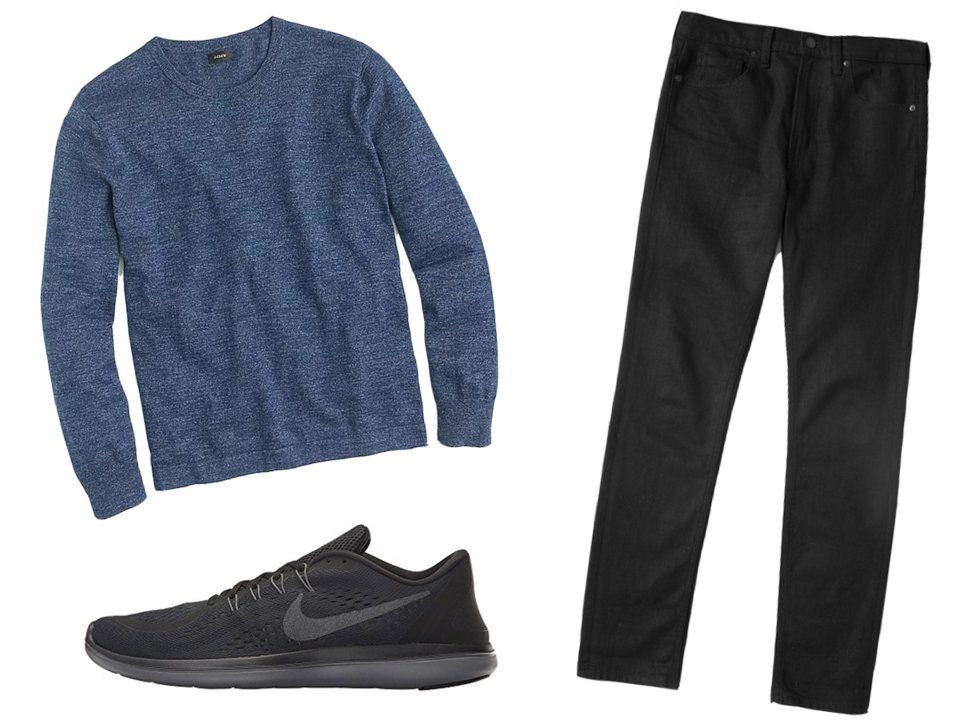 Áo thun dài tay của C.rew 49,5 USD, quần jeans Everlane 68 USD và giày Nike Flex RN 2017 có giá 60 USD.