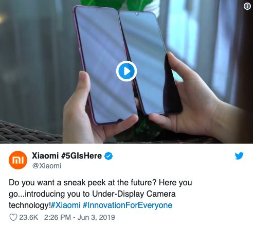 Tuần này, Xiaomi giới thiệu trên Twitter của mình về ý tưởng điện thoại có camera được giấu bên dưới màn hình. Dù vậy hiện chưa rõ khi nào nó sẽ được hiện thực hoá.