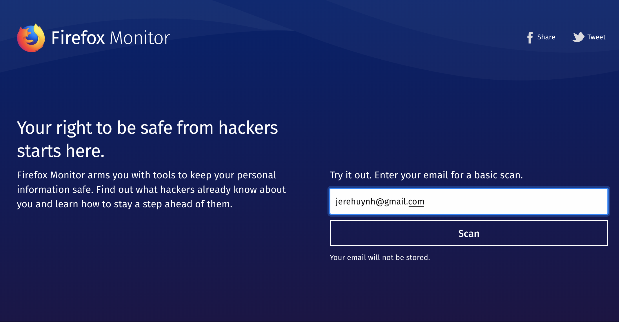 Trong trường hợp, bạn muốn biết được tài khoản của mình liệu có nguy cơ bị tin tặc xâm nhập hay đã bị đánh cắp thông tin hay chưa thì bạn có thể sử dụng công cụ mới được Mozilla (chủ quản của Firefox) phát triển gần đây.
