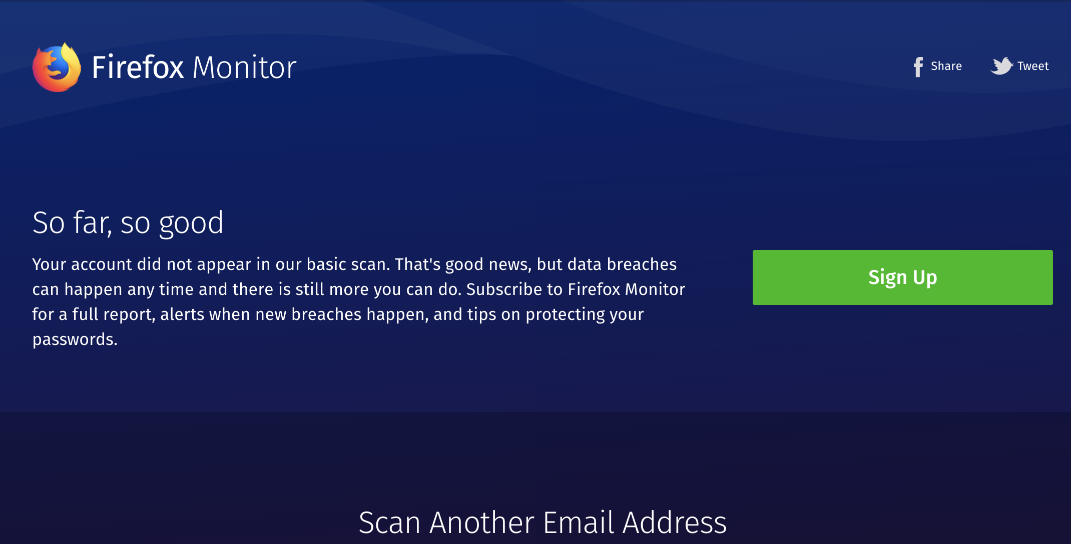 Nếu kết quả mà bạn nhận được là “So far, so good” nghĩa là tài khoản của bạn vẫn an toàn và không nằm trong danh sách những email đã bị xâm nhập hoặc đánh cắp thông tin.