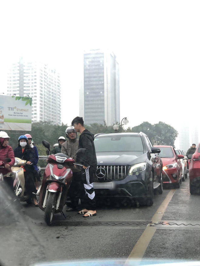 Theo người chia sẻ bức ảnh cho biết, trung vệ Đỗ Duy Mạnh của đội tuyển Việt Nam đã điều khiển xe Mercedes-Benz lưu thông qua cầu vượt Thái Hà thì xảy ra va chạm nhẹ với chiếc Honda SH màu đỏ do một người đàn ông điều khiển, di chuyển cùng chiều.