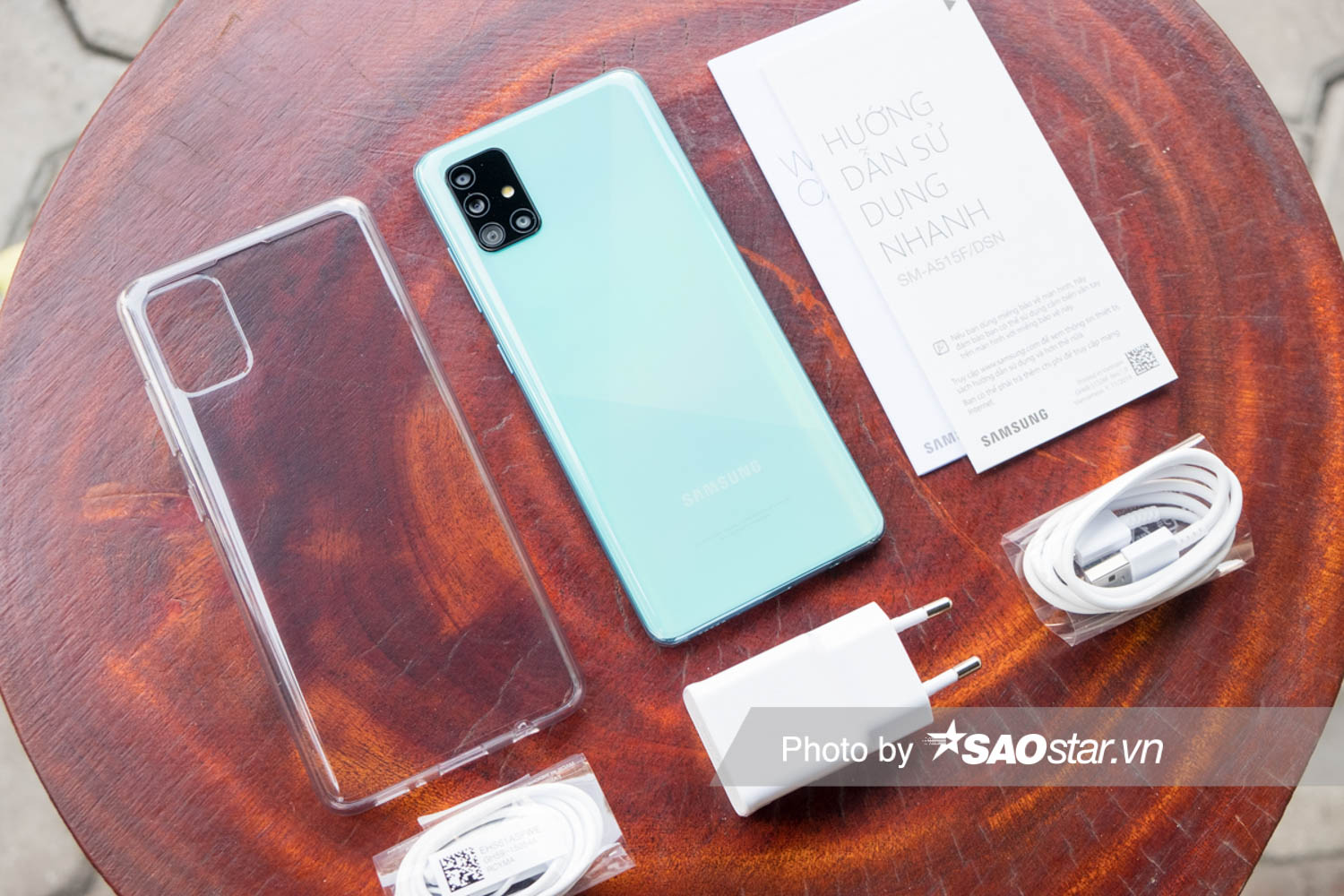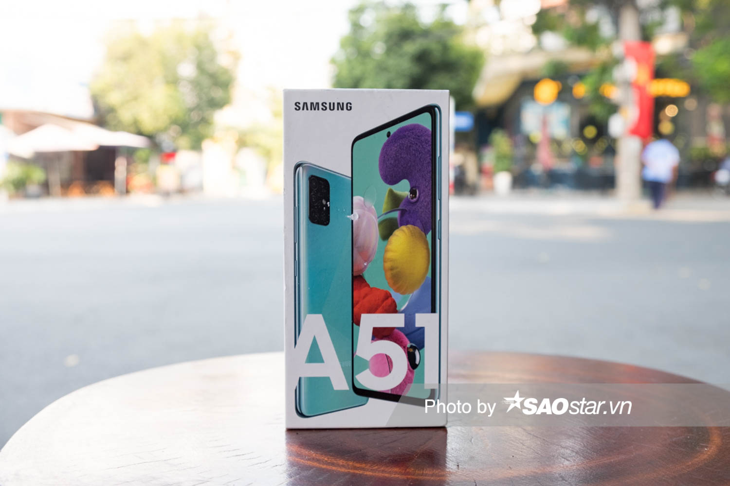 Hộp đựng của Galaxy A51 có thiết kế khá đơn giản với tông màu trắng chủ đạo.