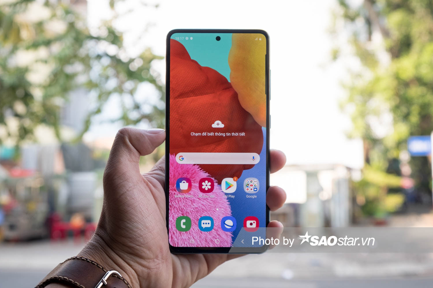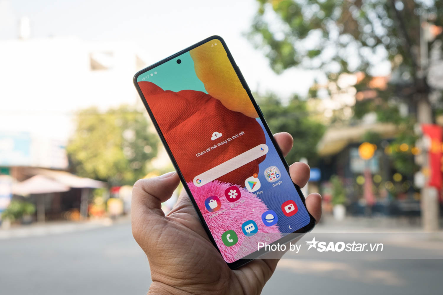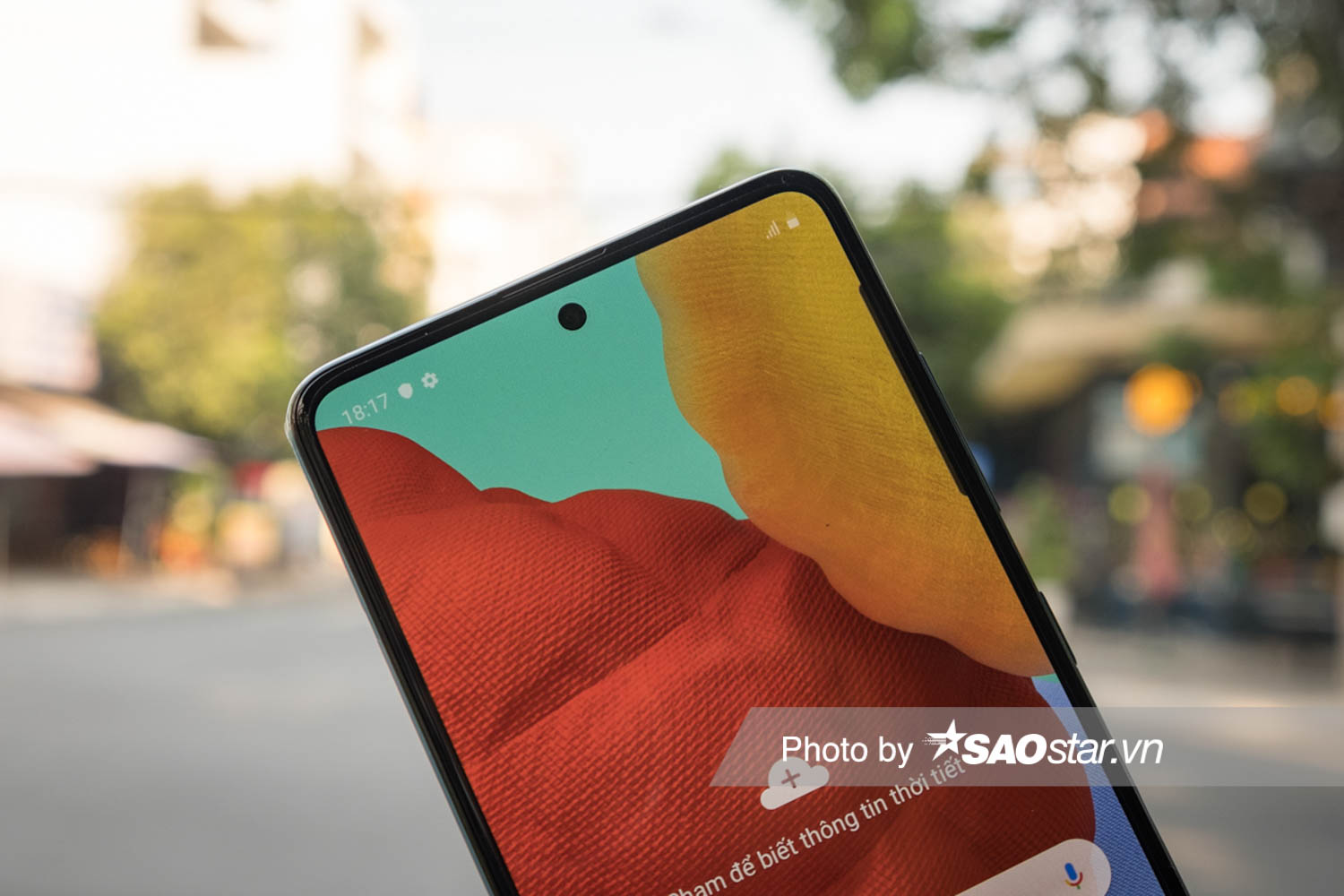 Galaxy A51 sở hữu màn hình Super AMOLED, có kích thước 6.5 inch và độ phân giải Full-HD+. Dù chỉ thuộc phân khúc tầm trung nhưng chiếc điện thoại này vẫn được áp dụng ngôn ngữ Infinity-O được trang bị trên các dòng flagship của Samsung.